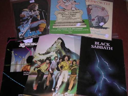 A collection of Tour Progammes mostly from the 1970s to included Rolling Stones 76 Europe Tour, 2 from Knebworth, Black Sabbath 1975 Europe Tour, Yes Shows 1977 World Tour, Ect.