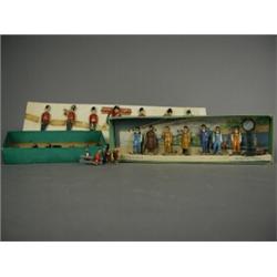 A collection of die cast toy figures: Dinky toys no. 4 Engineering Staff nine pieces, boxed, Miniature Figures For Model Railways Gauge O, seven figures, boxed, T.T.R. Passenger Station Figures and Equipment, and twenty one Crescent toy soldiers Est. 80/150