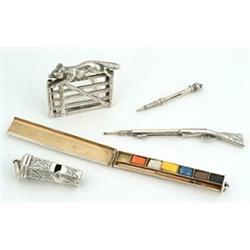 A collection of miniature silver, comprising; a propelling pencil in the form of a musket with fo...