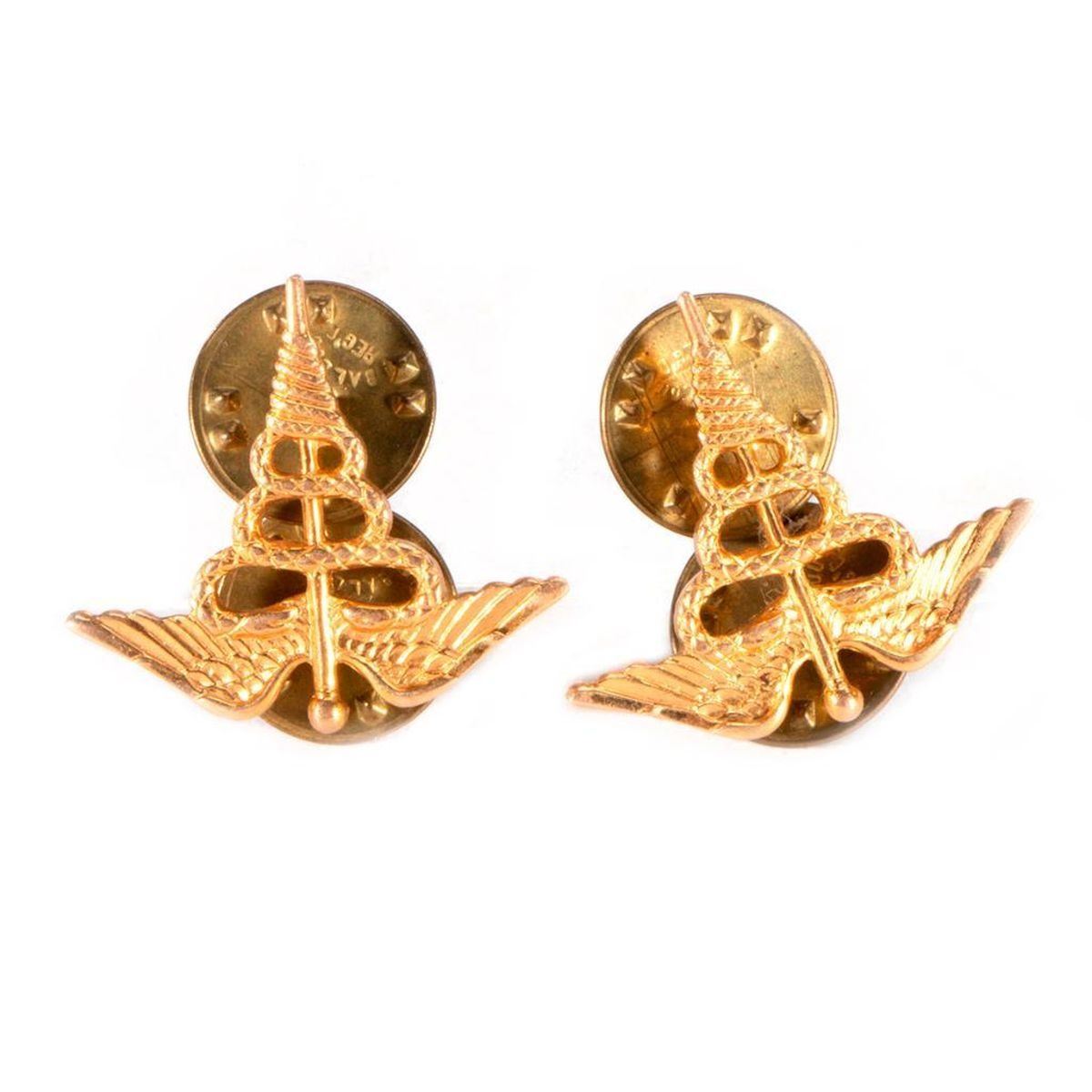 A Morton fountain pen and pencil set, a Wearever pen and pencil set, a four-piece set of Royal Army Medical Corps pins and a metal beaded purse measuring 10 inches x 5 1/2.