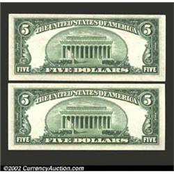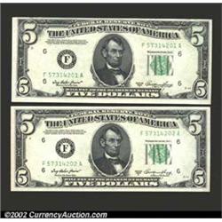 A consecutive pair of 1950-A $5 Federal Reserve Notes, Fr-1962-F, both grading Choice-Gem CU. 2 note