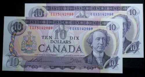 A consecutive pair of the 1971 series. BC-49eA Thiessen-Crow EDX5142988 and 89. Both notes are Gem uncirculated.