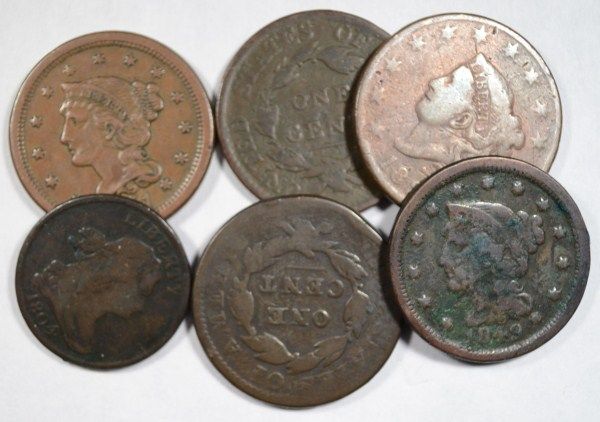 different large pennys(1817-20-34-49-51) good or better each with some problem but UNATTRIBUTED est $120-$130