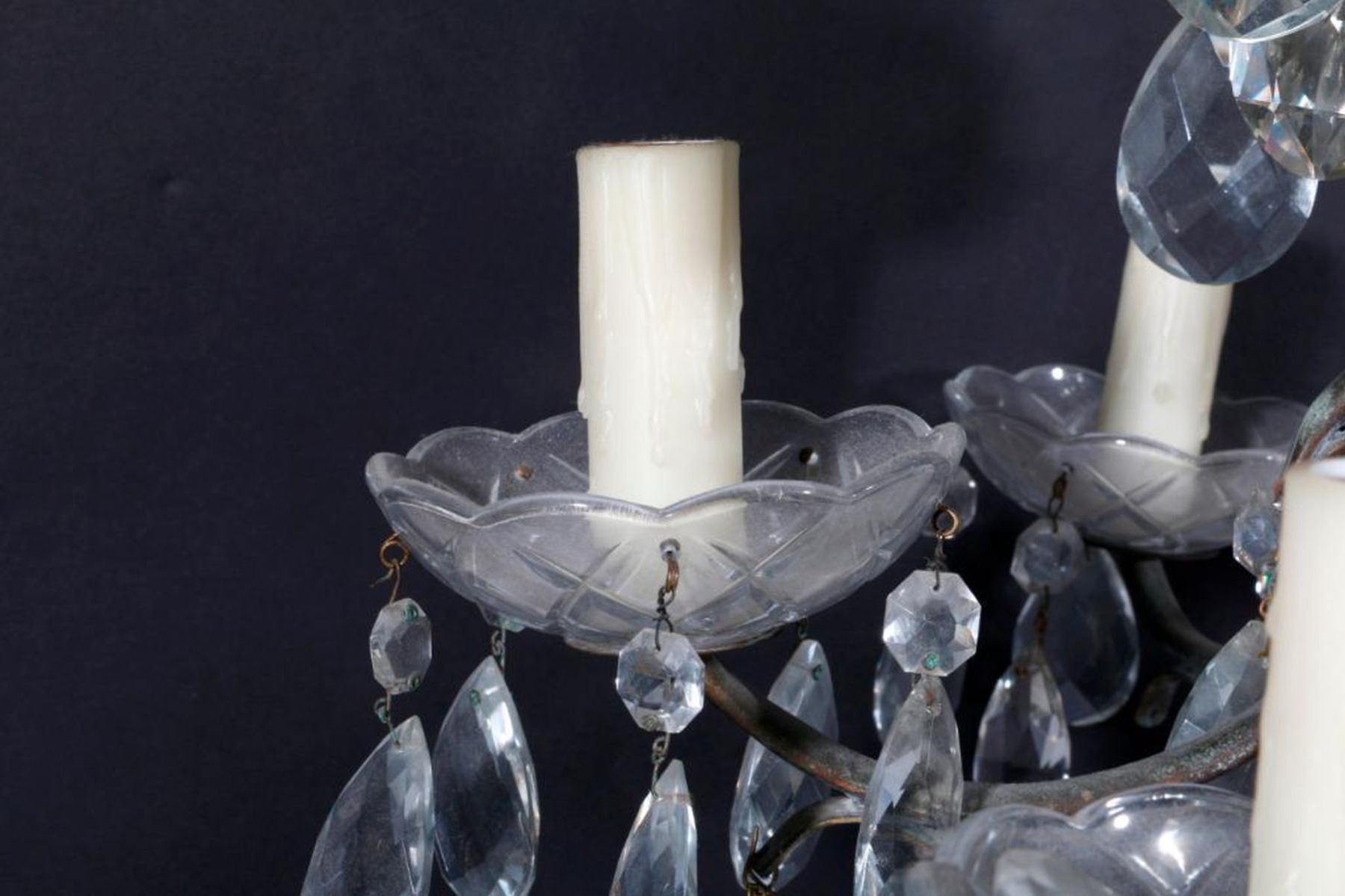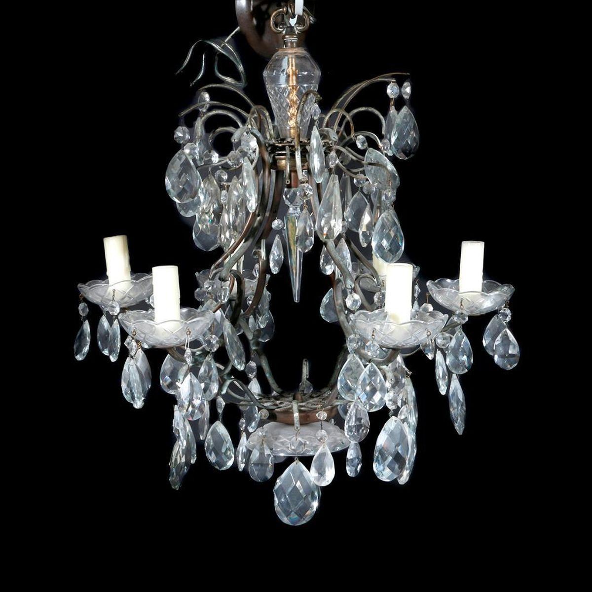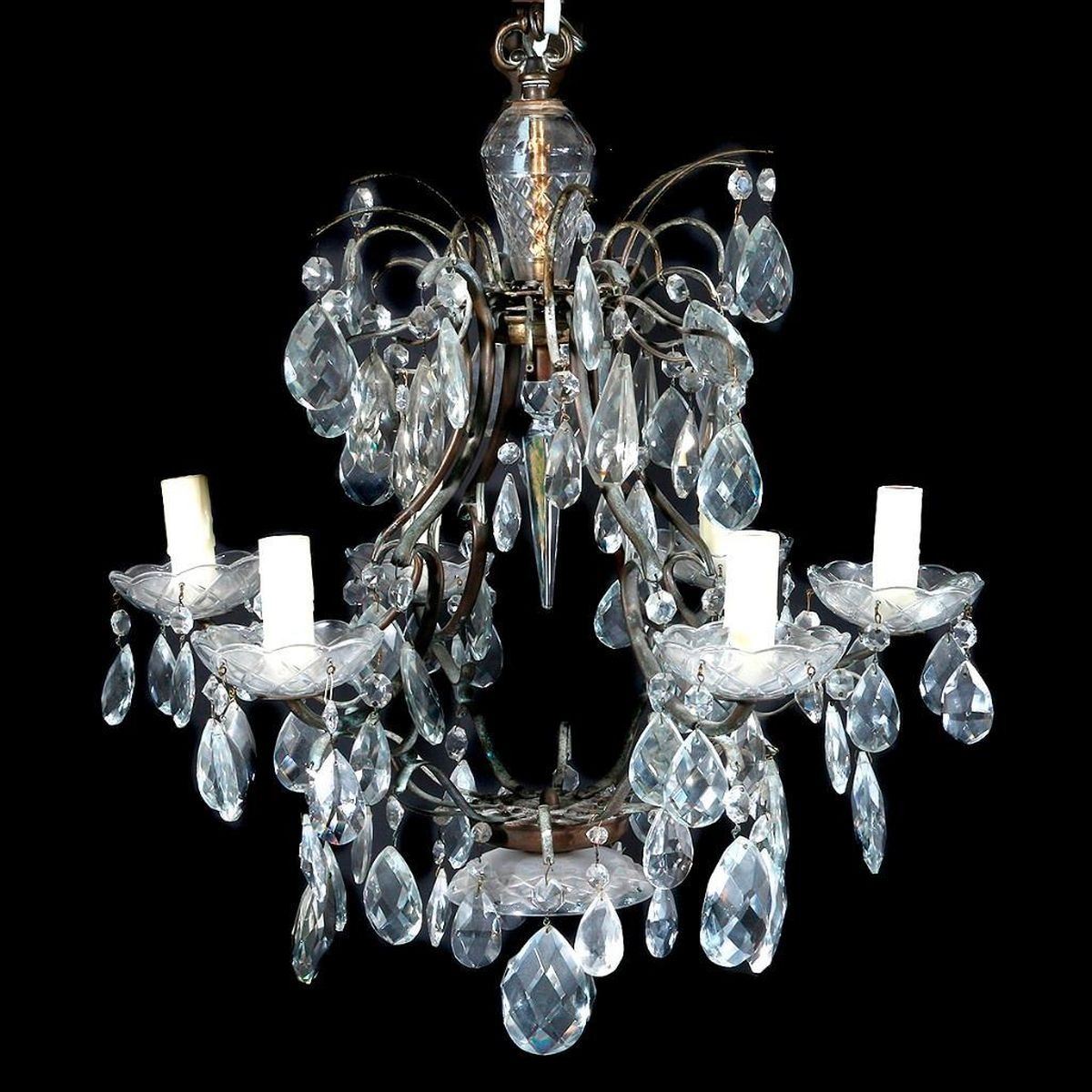 A 20th century crystal chandelier measuring 22 1/2 inches high x 21 wide. Note: this item is heavy for shipping.