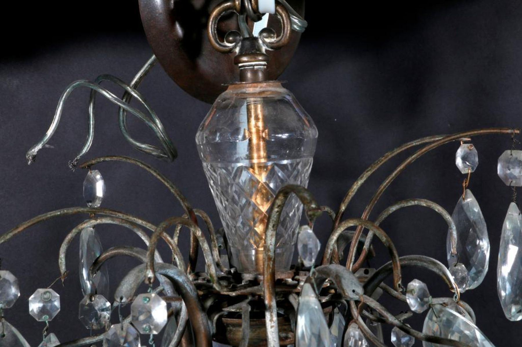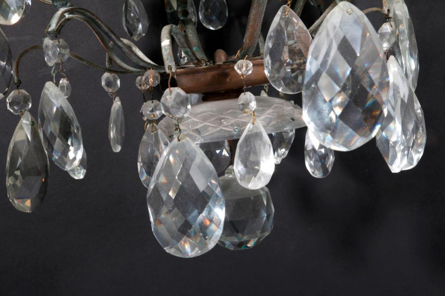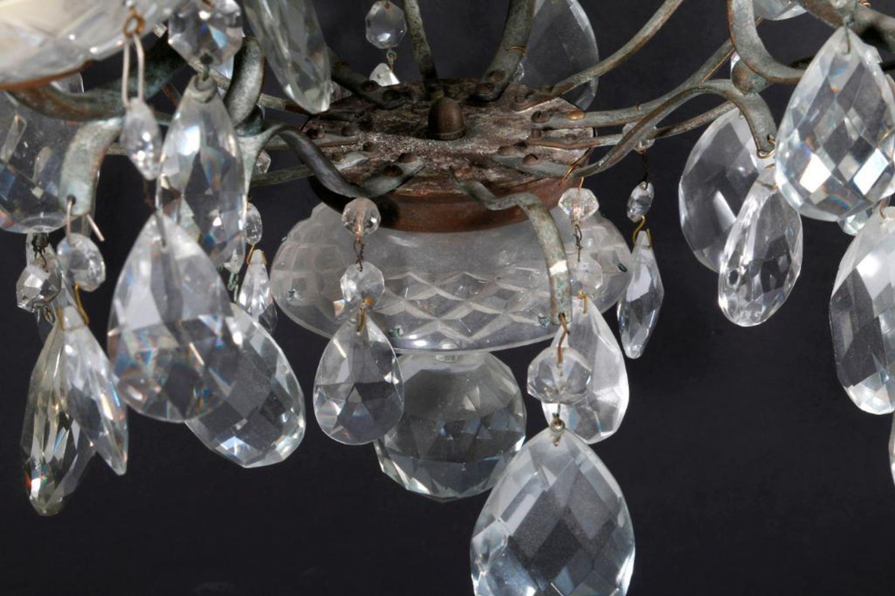 A 20th century crystal chandelier measuring 22 1/2 inches high x 21 wide. Note: this item is heavy for shipping.