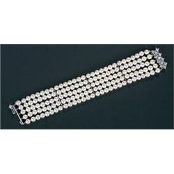 A cultured pearl five row broad bracelet, the uniform beads approx. 5.75mm diameter, on a diamond...