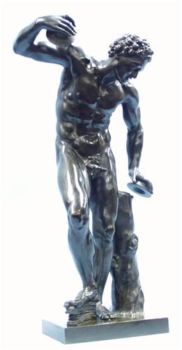 A dark patinated 19th century bronze figure of a dancing nude cymbal player. Museum cast after an 18th century model. Rectangular base with J. A. Boeuf & Rouard Foundeurs, Paris stamp and marked Musee de Florence. 27" high.