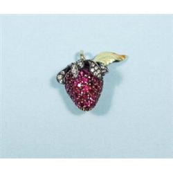 A delicate 18 kt. yellow gold, ruby and diamond pendant with a floral leaf ornament. Hallmarked.…