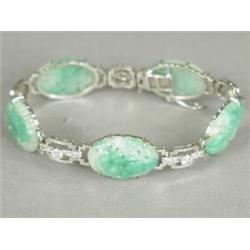 A diamond and carved jade bracelet set with approx 1ct of diamonds, in 18ct white gold and platin...