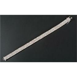 A diamond bracelet in the form of two rows of round brilliant diamond quatrefoil flower-heads, ap...