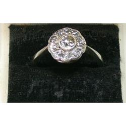 A diamond cluster ring with central old cut diamond within a circle of ten smaller stones £500-700