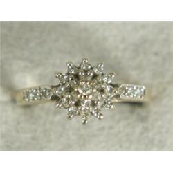 A diamond cluster ring with diamond set shoulders, set in 9ct gold, size I 1/2 Est. 75/100