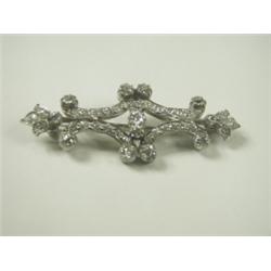 A diamond scroll brooch set with old cut stones, set in white metal (tests platinum), 55cm lon...