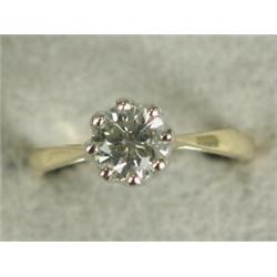 A diamond solitaire ring (approx 1.12ct), set in 18ct white gold to a yellow shank, size O Est. 1850/2150