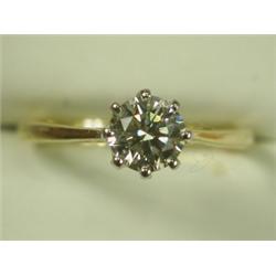A diamond solitaire ring of approx 1ct (with certificate: clarity VVS1, light yellow), set in 18ct white gold to a yellow shank, size N