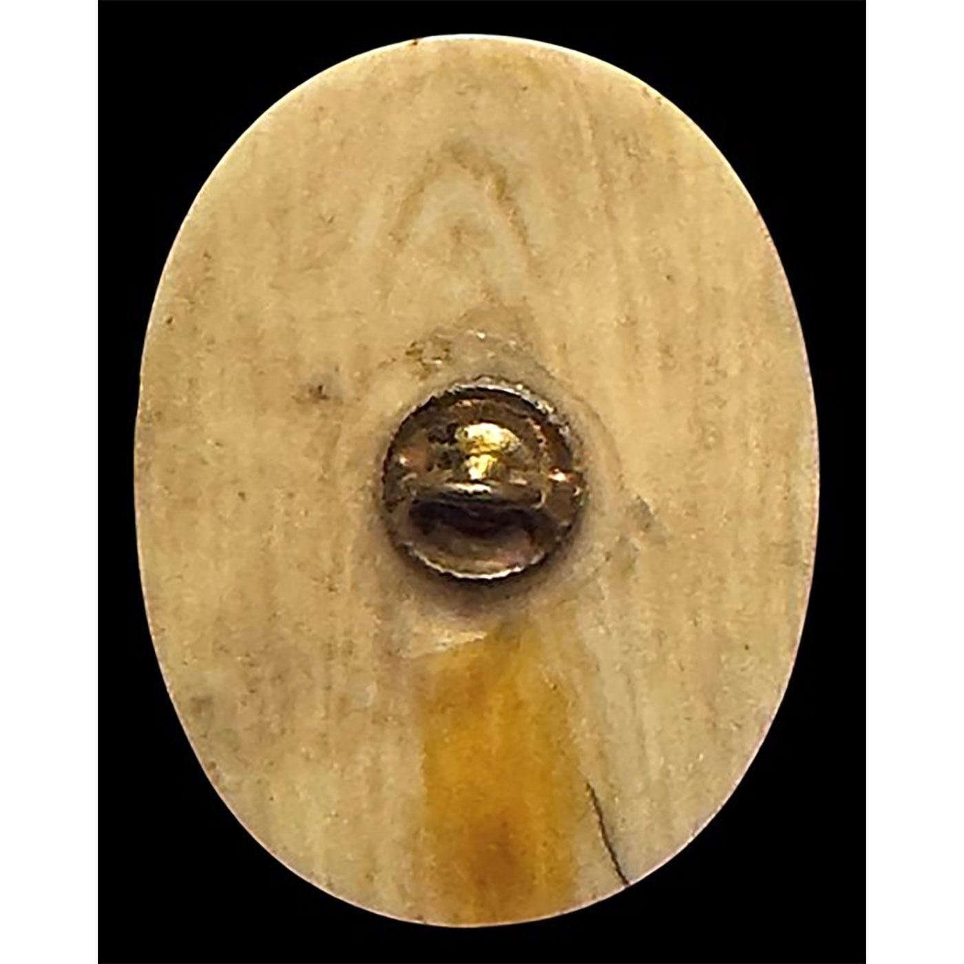 1 Large-Medium 19th century oval Shibayama Button. Here is a beautifully hand crafted 19th century natural material inlayed button in the Shibayama technique. Shibayama is the name given to this style of inlay work after an 18th century Japanese artist who created and perfected the technique. Buttons were not made in this technique as far as we can tell till the late 19th century. Some of the Shibayama buttons one sees today were produced in China in the late 20th and early 21st centuries are not to be confused with these fine hand made versions from the 19th century. Oval examples are also much less common like this example.