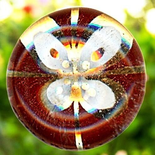1 Small 19th century example depicting a Butterfly. This is one of those scarcer Kaleidoscope buttons that helped the late Jean Young of California score a 1st place ribbon.