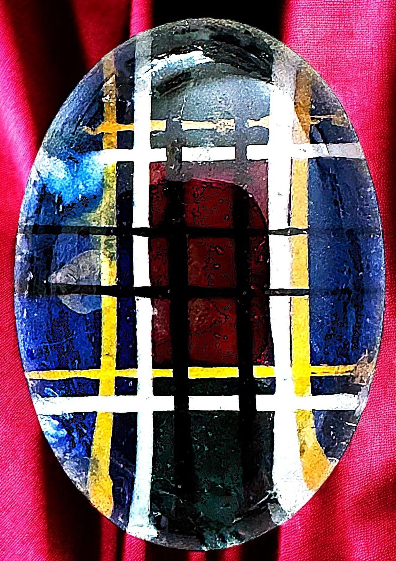 1 Small 19th century example in an oval shape. This is one of those scarcer Kaleidoscope buttons that helped the late Jean Young of California score a 1st place ribbon.