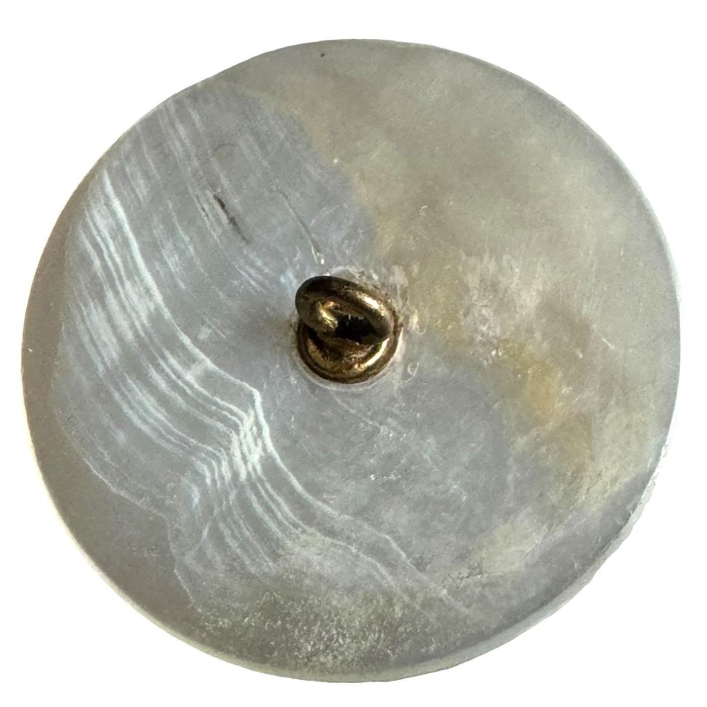 1 Large 19th century carved smokey pearl button. Jean Young of California had two of these very detailed buttons with the head on sailing vessel (unusual viewpoint), the mate we sold in our November auction. That example sold for more than the estimate we have on this button and we think this one is just as nice and fine as that one was. Perhaps the underbidder on that one might like to attempt getting this one.