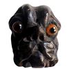 1 Medium 19th century example of a dog with glass eyes. Here is a great detailed dog head with glass eyes from the late Paula Norby. The button is very thick hand carved wood and has a brass shank.