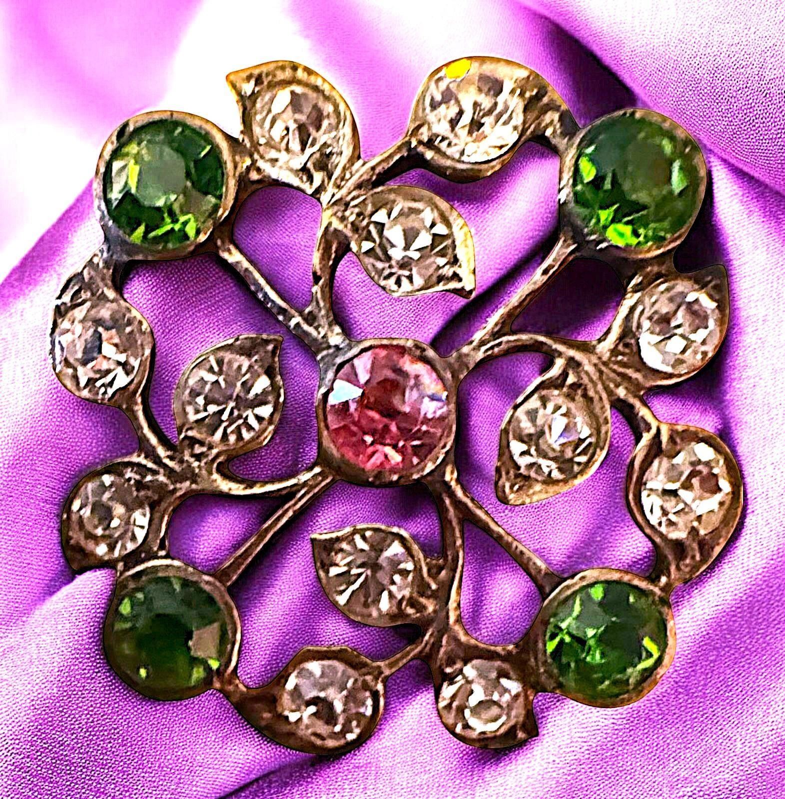 1 Medium size late 19th century Suffragette example. These three colored paste jewel buttons like this one were hand crafted during the Suffragette period in England and the United States during the late 19th cand early 20th centuries. This was a period in which women were actively advocating for women rights to vote. This and a couple of other examples in this auction were a specialty to this collector and they spent years compiling a small card of these wonderful and hard to find buttons.