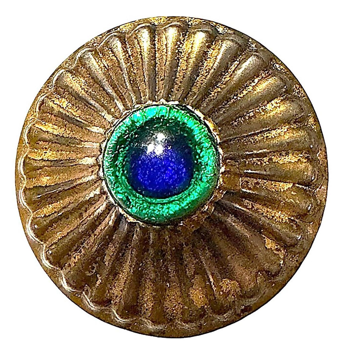 These beautiful Peacock eye glass buttons have become quite popular in recent years and this large brass and glass Peacock eye glass example should be no exception. In beautiful condition and striking design indeed.