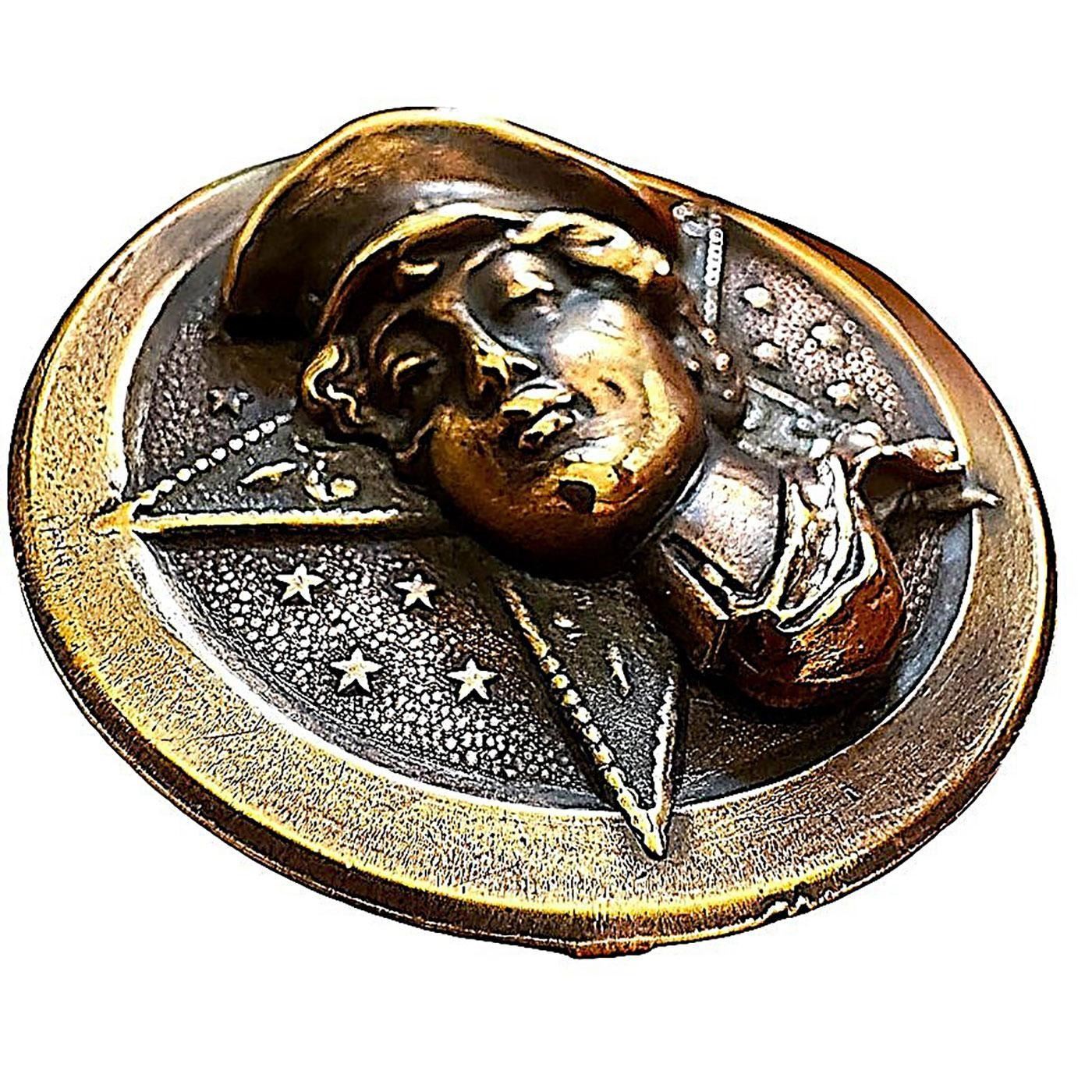 1 Large late early 20th century high relief sailor button. I have always loved this button for its relief work and its detail, not to mention after loosing out on it at a National auction one year it took me 15 years to find one for sale. It is not a common button to find. Notice the star design on the front and back.