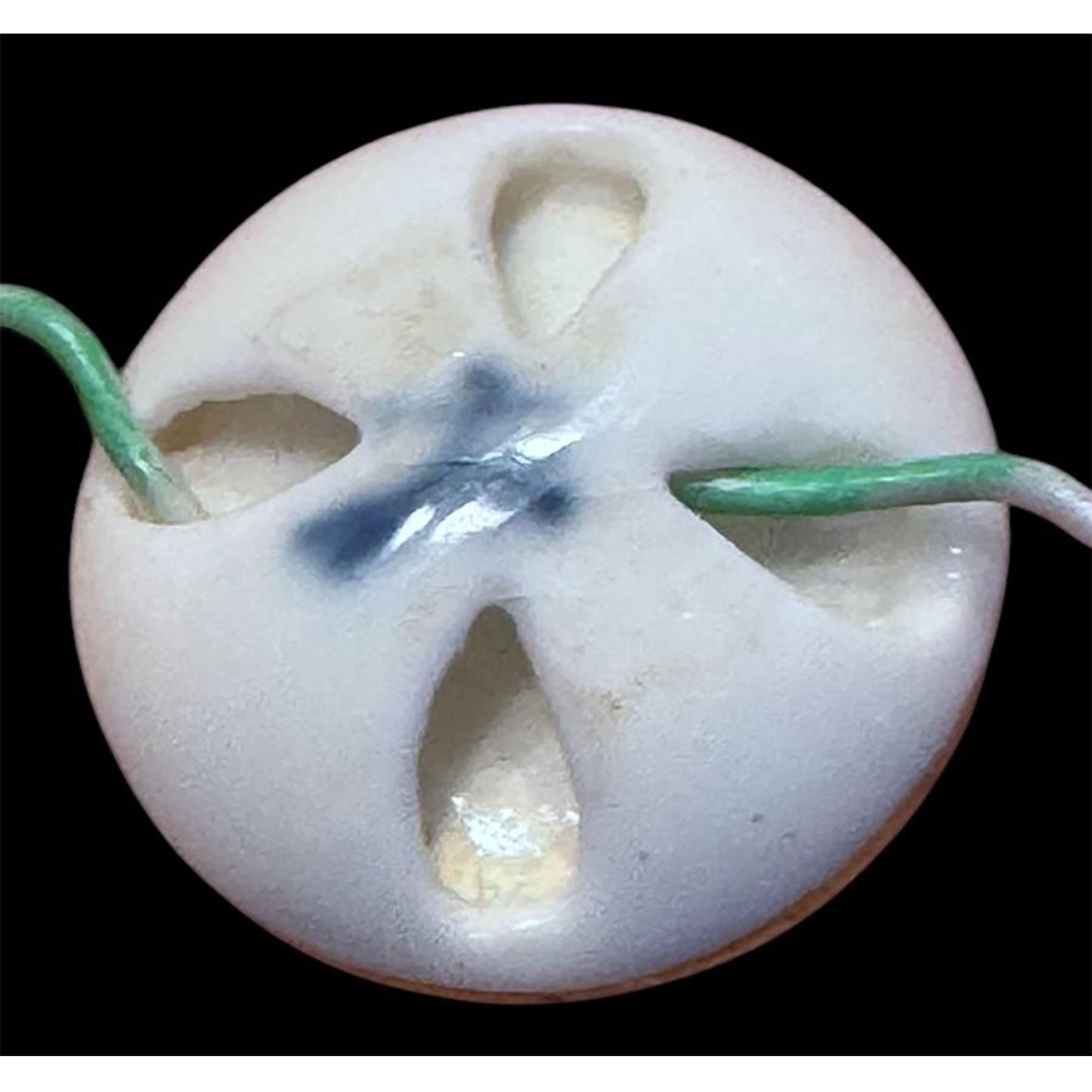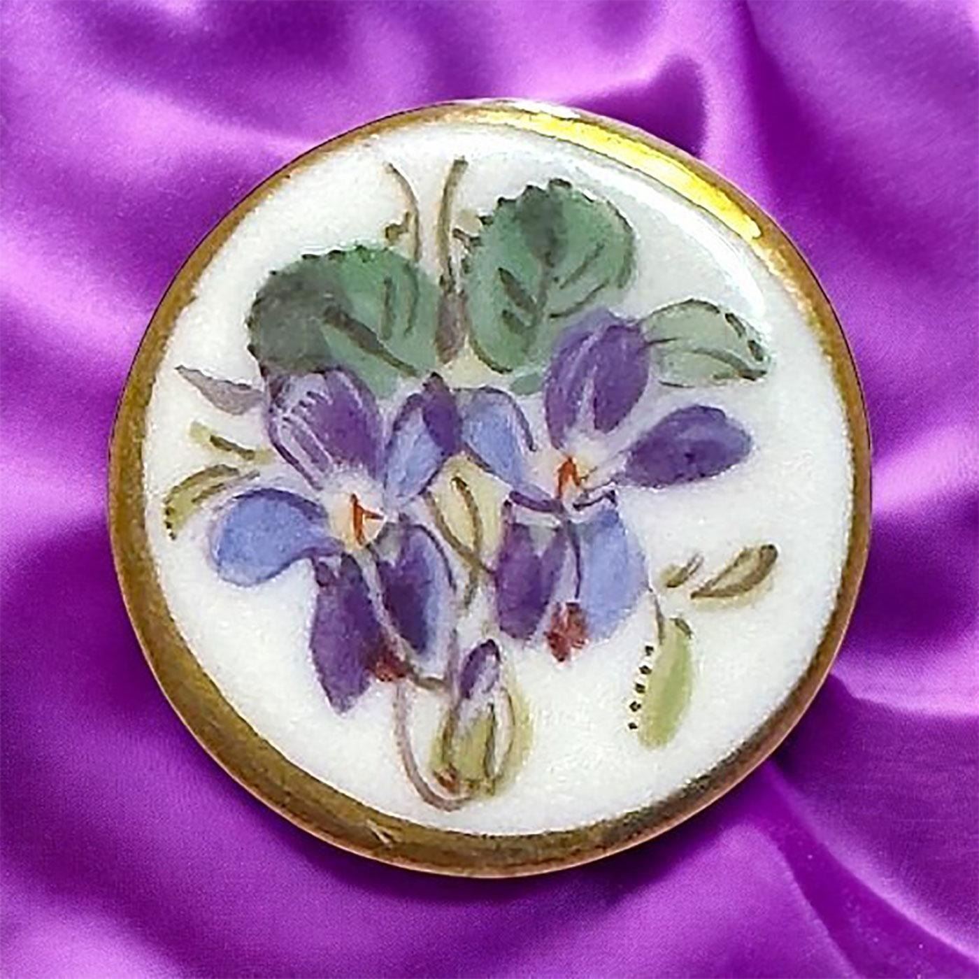 1 Small 18th century Meissen backmarked porcelain button. Here is a beautifully hand painted porcelain button with a 4 hole shank back and crossed swords blue mark indicating the Meissen factory which produced this beautiful example. The purple pansy flowers and green leaves are delicately hand painted. Small 18th century buttons are rare to find.