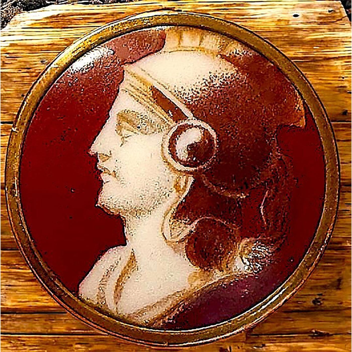1 Large 19th century "Liverpool" transfer button. These very large size buttons in this technique are not plentiful, especially with colored backgrounds. The style of these were named Liverpool transfers by button collectors as they were created in the technique similar to items made in Liverpool, but were most likely made in France. This example is in fine condition and again is an uncommon very large size.