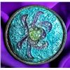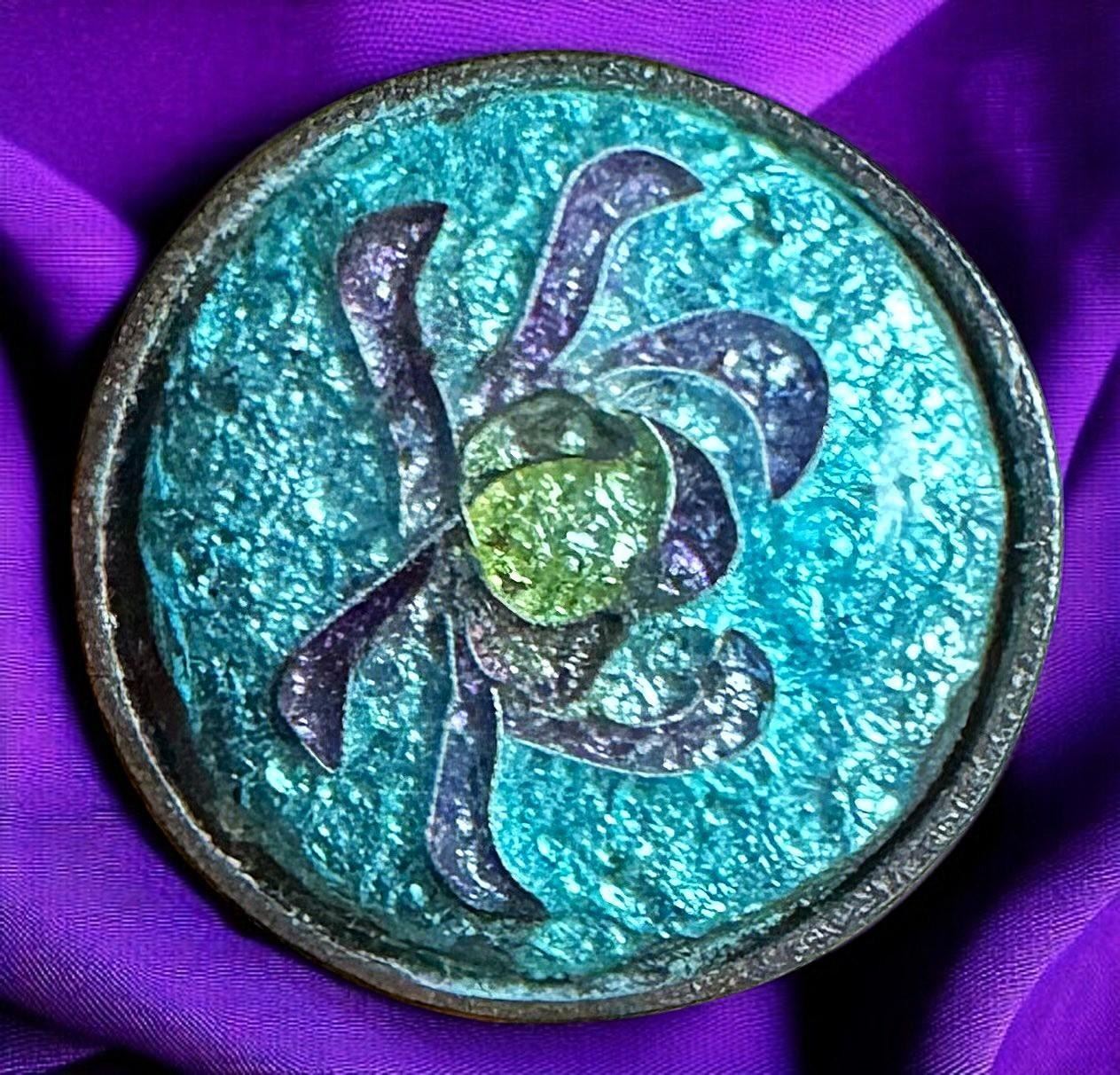1 Diminutive 19th century Japanese Gin Bari example. Gin Bari buttons in any size are always sought after by collectors and this diminutive pictorial example is no exception in its yellow and purple cloissonne technique with typical Gin Bari blue background. Self curved needle shank and in fine condition.