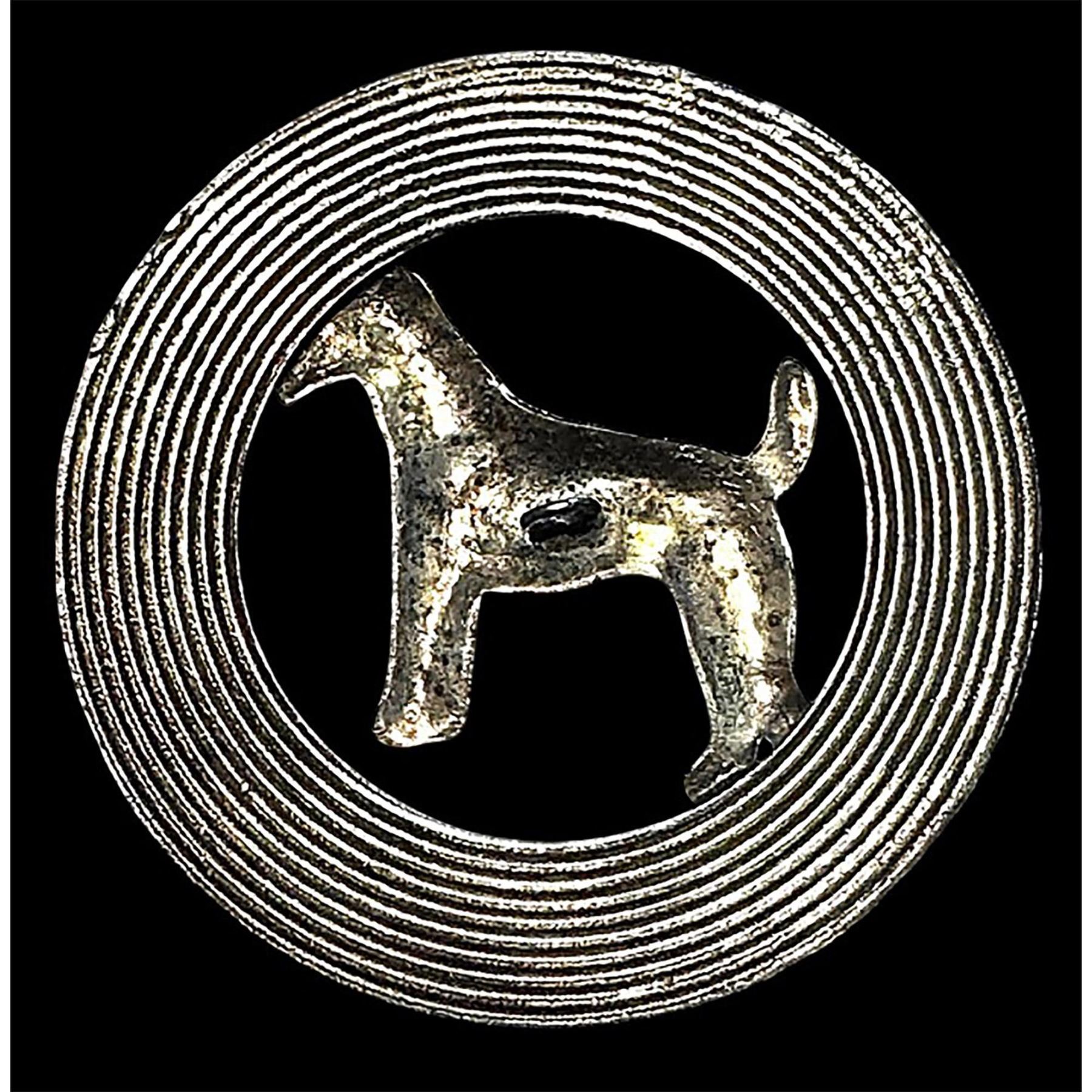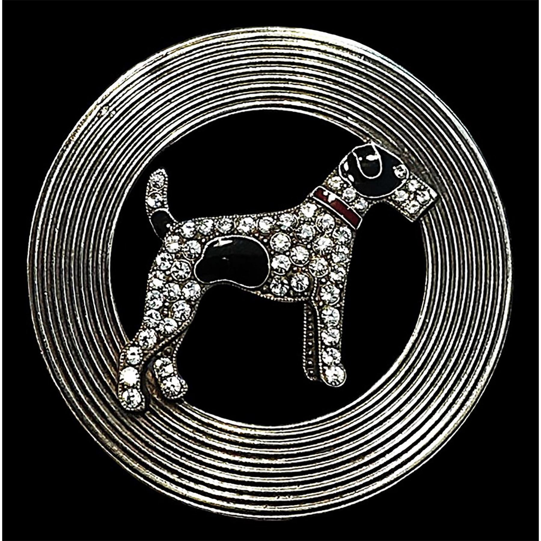 1 Extra Large 20th C. pierced enamel and paste Terrier button. Here is a harder to find and stunning example of the 1930's French White buttons. The Terrie dog is set with all over pastes and an Enamel DF (decorative finish) in black and red. Great button.