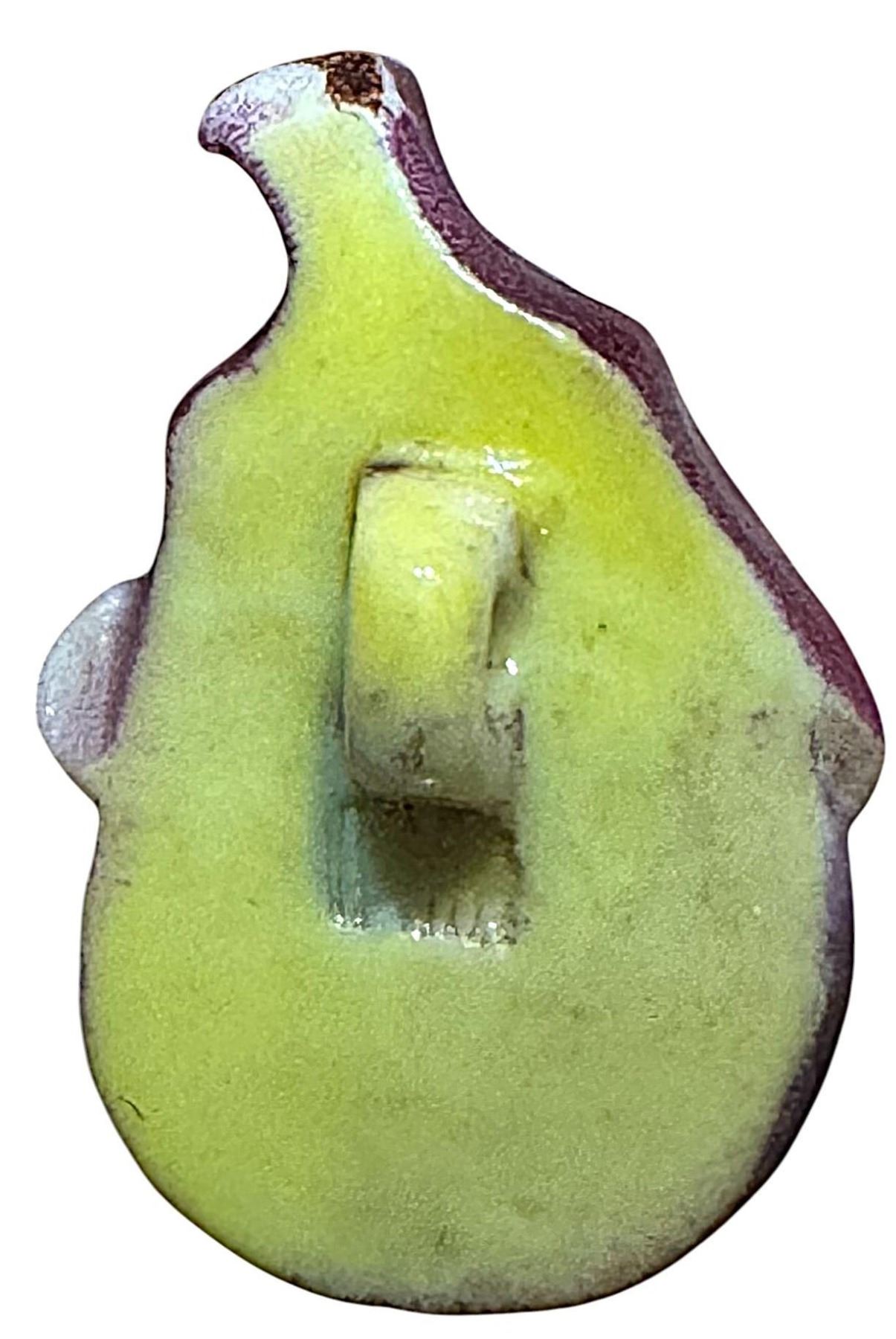 1 Medium size 20th century colorful Arita example. This beautiful and fine porcelain Eggplant button was made in Japan by the Toshikane Pottery company in the Arita province of Japan. Backmarked and in fine condition.