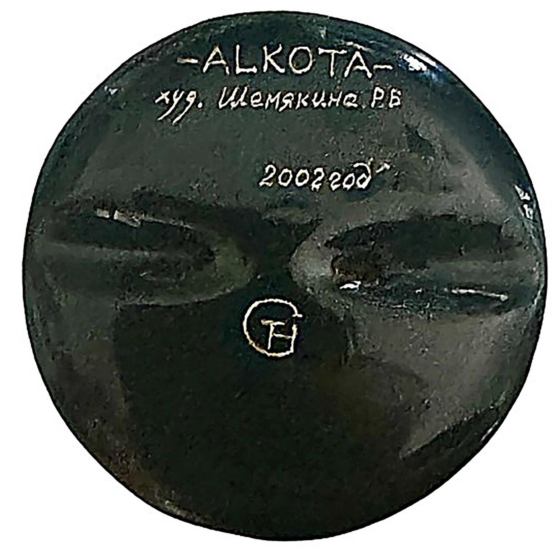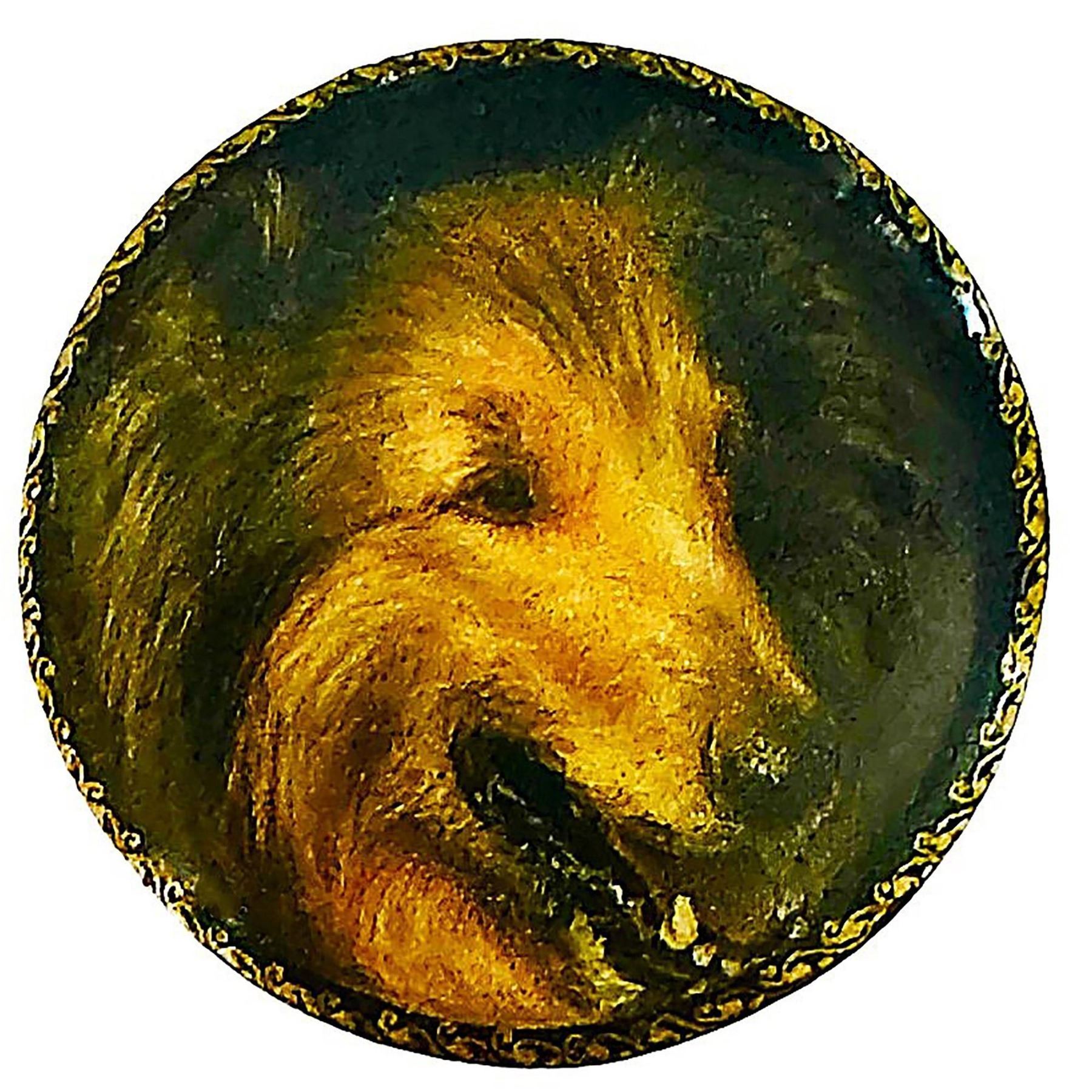 1 Large 21st century Russian Lacquer pictorial dog button. Here is a beautiful example of the Russian fine work hand sone in Lacquer work in the early 200's. Signed and dated on the back.