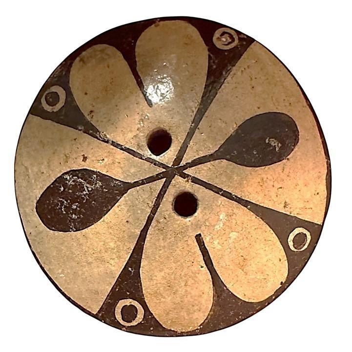 Our eyes popped out when these buttons were sent to us by a consignor who's relatives were from the Zia Pueblo in Sandoval County New Mexico almost 100,years ago. There was a whole card of these Zia pottery along with silver and turquoise buttons (some in this auction) that had been passed down in the family and now wishing to be sold. We are delighted to bring some of them to you for sale in this auction with this history of the buttons.