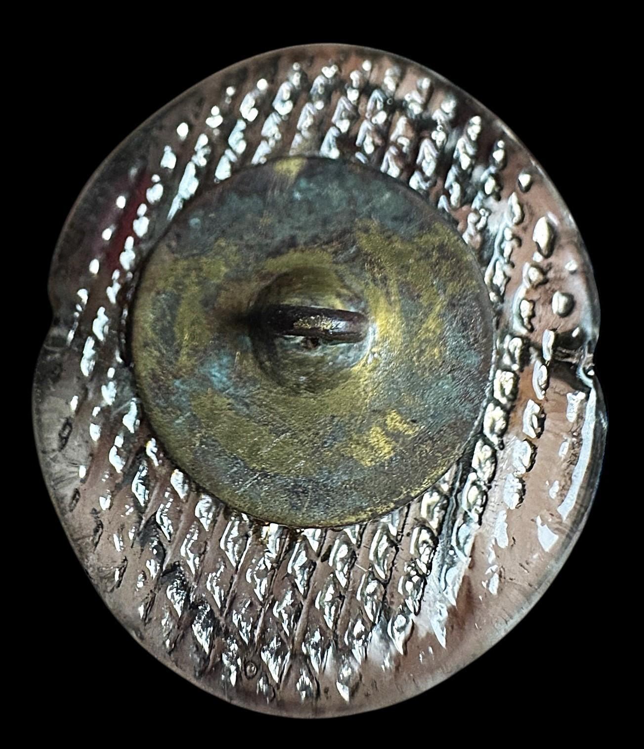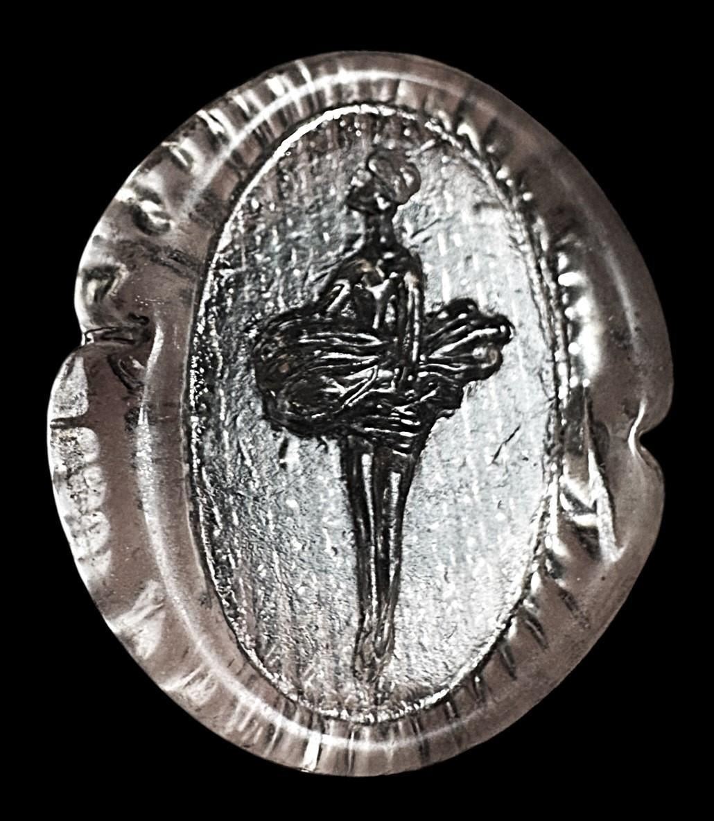 1 Large medium 20th century Bimini glass Ballerina example. Here s a nicely detailed silver lustered clear glass button from the English Bimini factory in the 1940's. The detailed design of the elegant female Ballerina is silver lustered on this clear glass example.