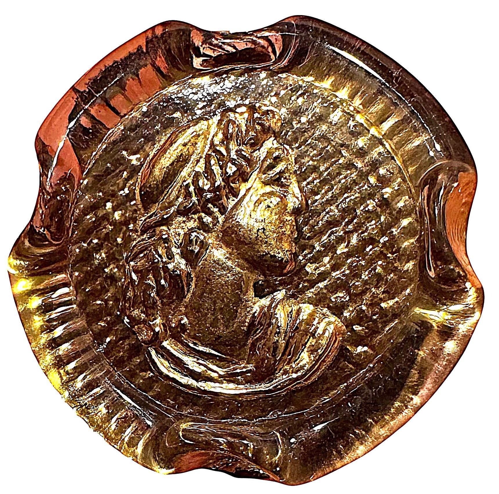 A large 20th century Bimini profile head example. This detailed example shows a nice profile bust on an amber with gold luster Bimini backmarked example.