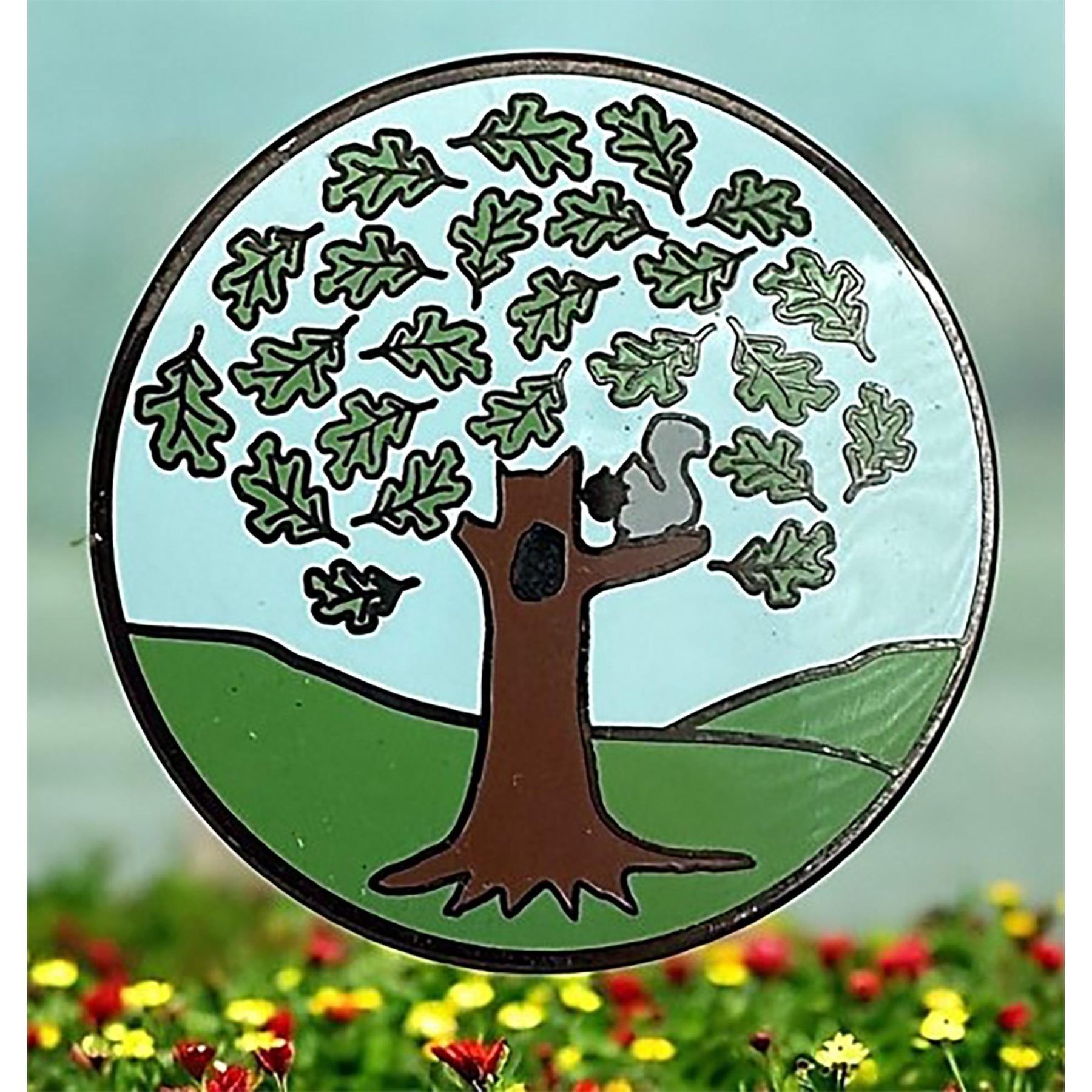 1 Large 20th century very cool enamel tree button. Here is a cool example of enamel work in the 20th century depicting a tree and leaves and shows a squirrel on the branch, a fun design. The thick heavy bronze base makes this example a substantial button.