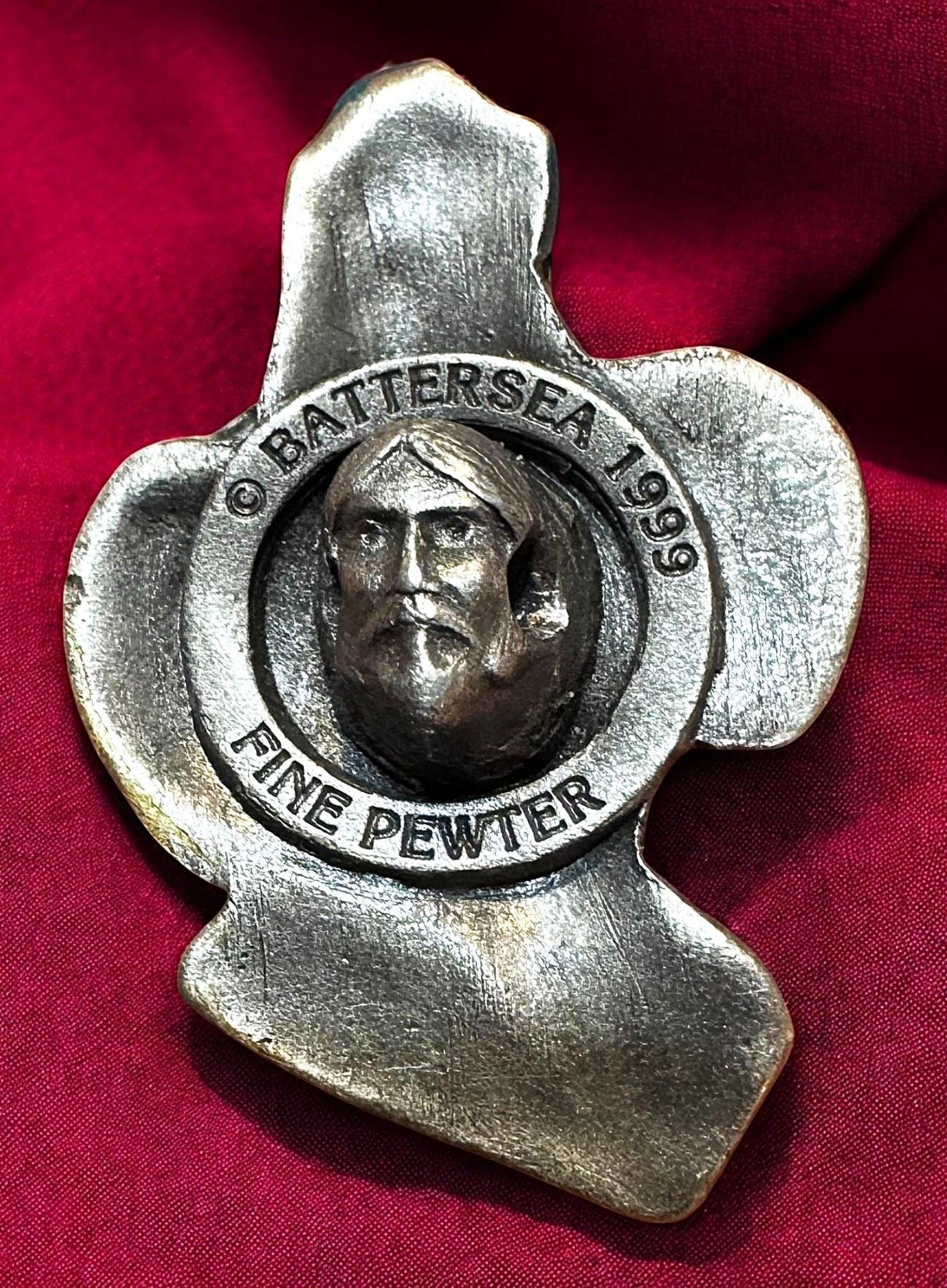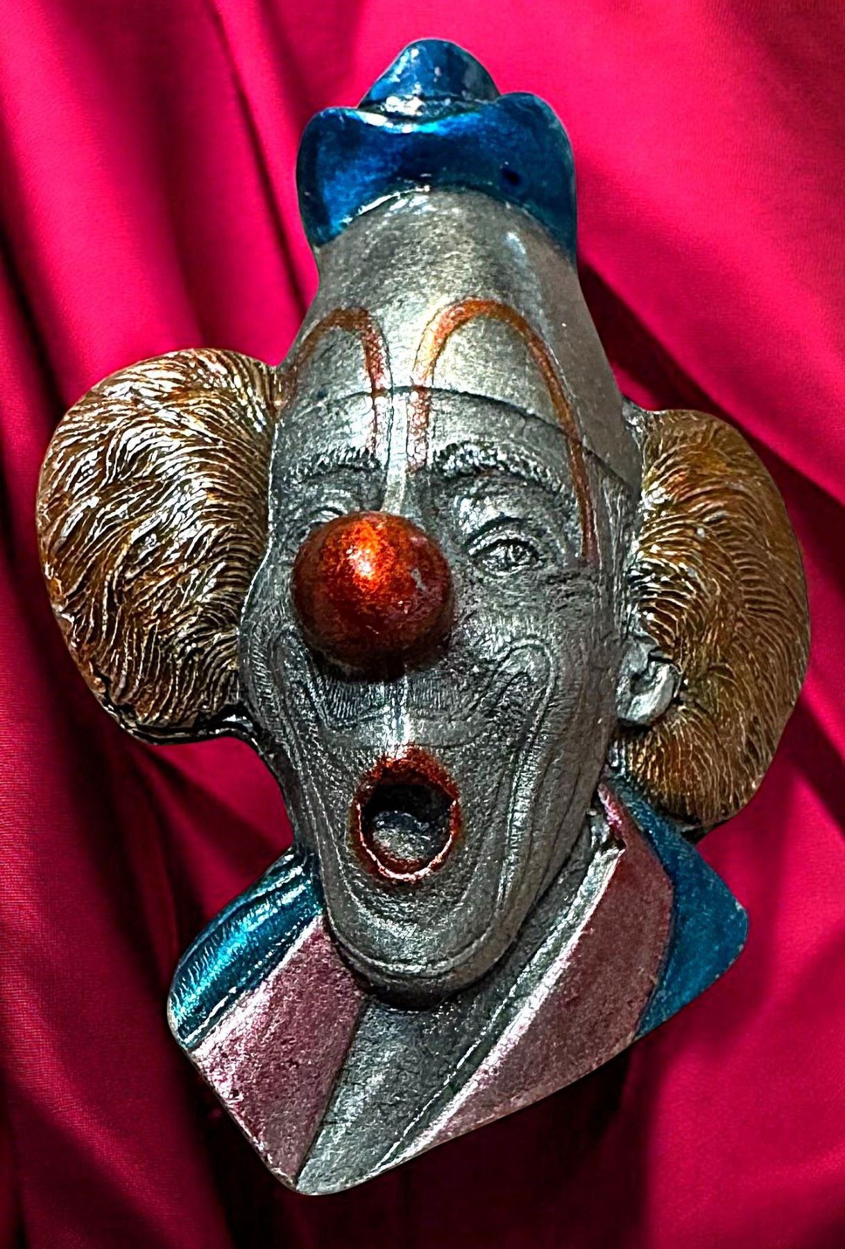 1 Large 20th century realistic clown Battersea pewter button. Here is a great example of a pewter pictorial with colored tinting from the Battersea Pewter button Co. of Wisconsin. Face shank.