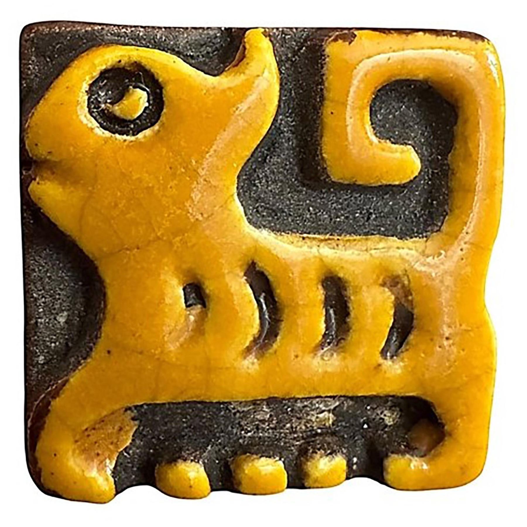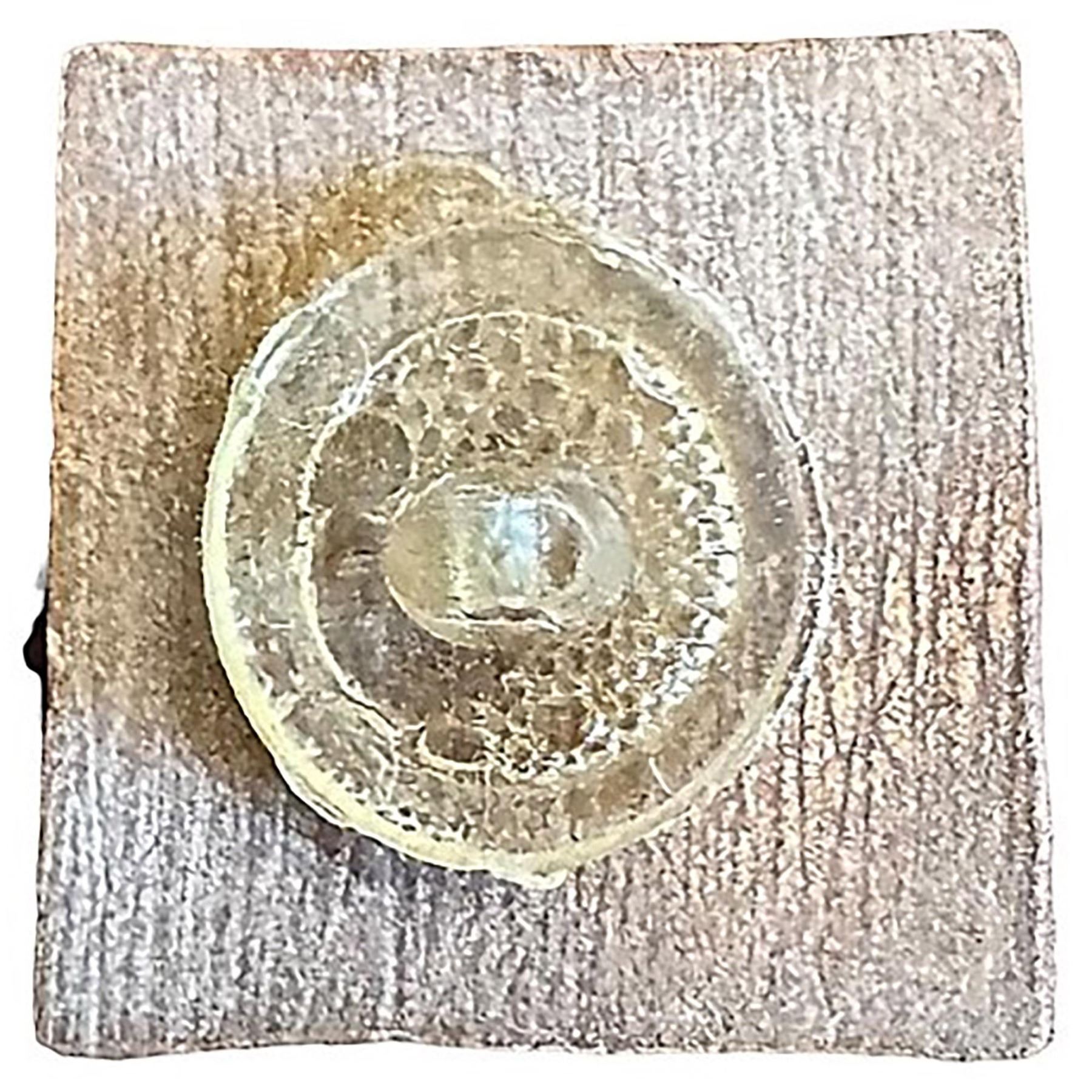 These pottery buttons from California have become quite popular in recent years. We have not had one for sale in quite a while as they do not seem to be particularly plentiful. They were produced in small quantities apparently by the Sammoth Pottery company in California. Nice and cool shape and design along with a crackle glaze.