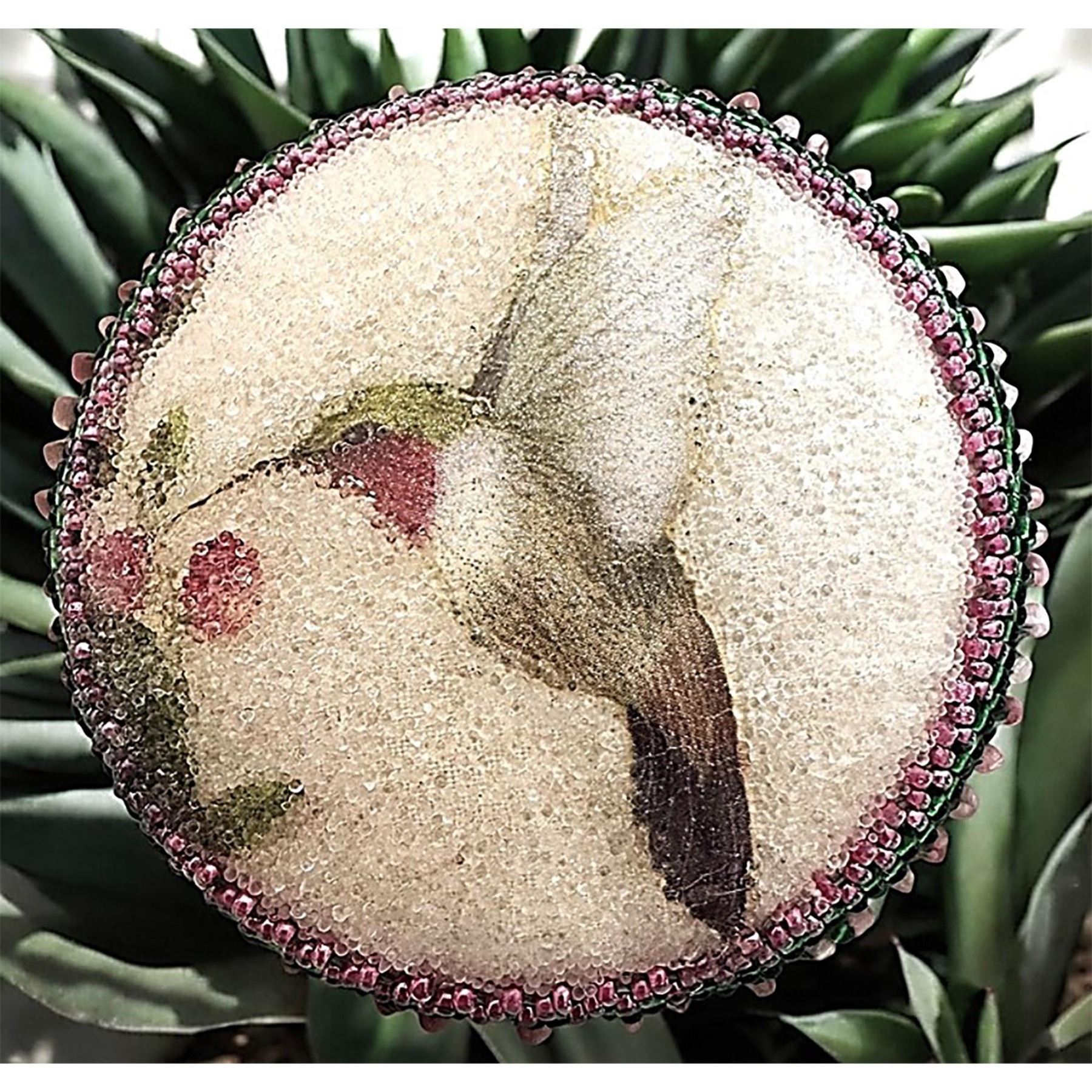 1 extra large 21st century beaded fabric colorful studio button. This very lovely and nicely created studio button is signed MCD and dated 2008. The beautiful and tastefully designed Dragonfly is very colorful and in fine condition.