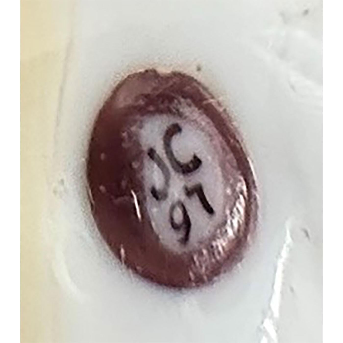 1 Large medium 20th century lampwork glass wildcat button. This very nice example was hand made in 1997 by Julie Clinton of Washington State. Julie and Will Stokes together made some fantastic buttons back then and the button world misses there high quality craftsmanship. You do not find many of Julies examples come on the market that often.