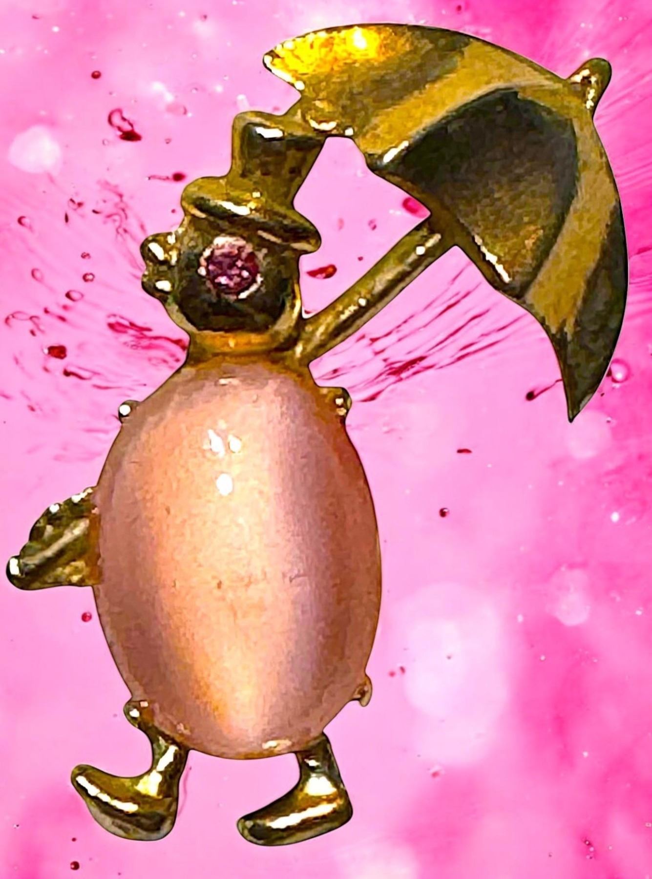 1 Large medium pink bodied Jelly Belly Button. The glass body of this cool design metal penguin is shaped like a jelly bean and therefore the name Jelly Belly coined by button collectors.