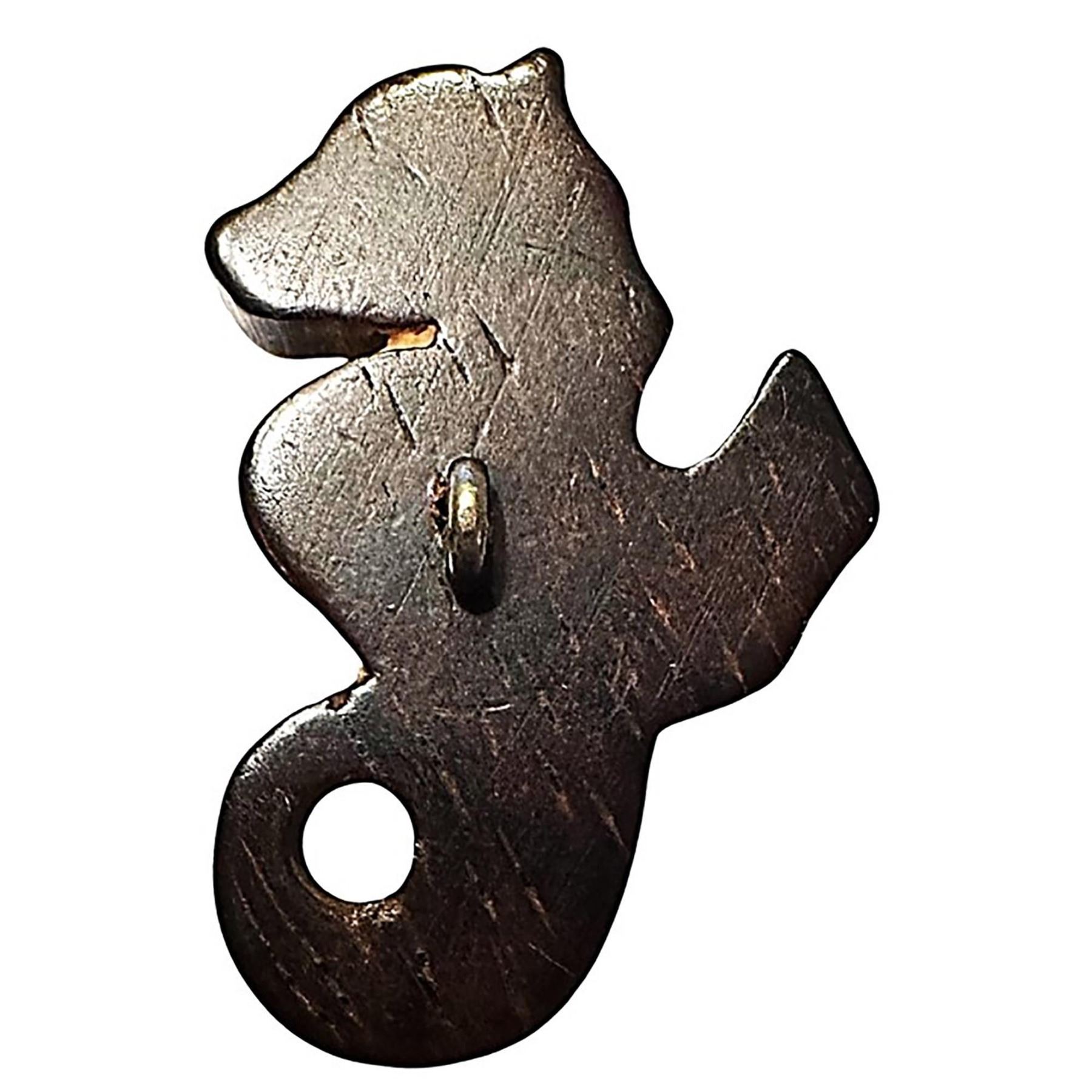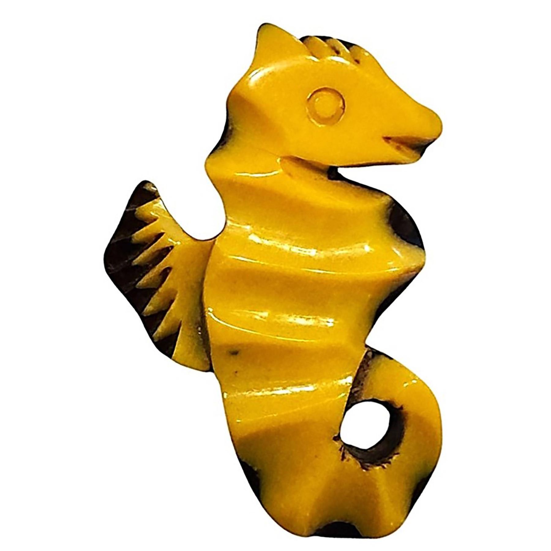 1 Large 20th C. yellow carved Bakelite and wood realistic button. This seahorse example is one of a few designs and colors we find in this technique of Bakelite over a thick wood base. Nice detail and very vibrant color.