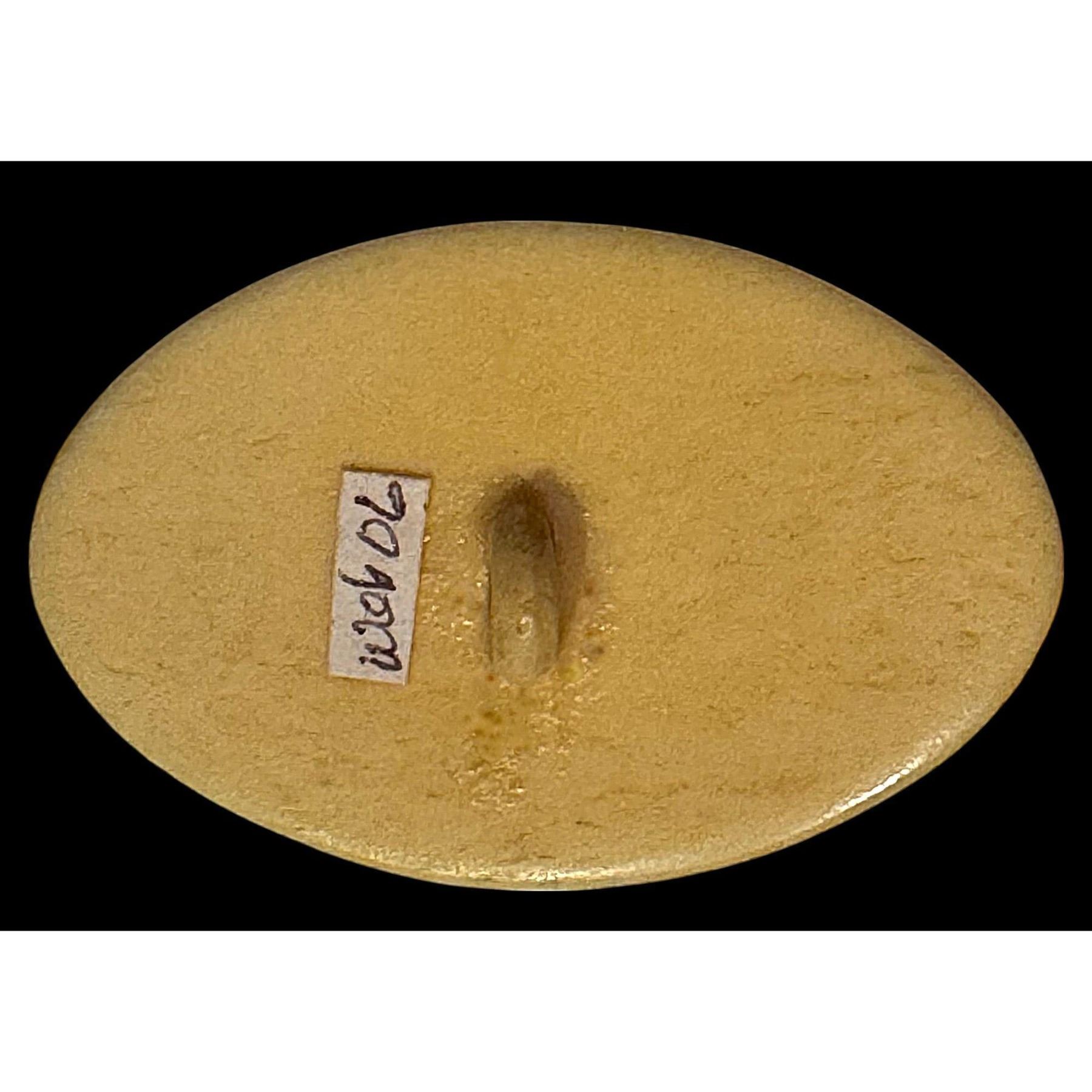 1 Large 20th century oval PEACOCK button. Here is a beautifully detailed full bodied peacock carved and made to like a real natural material. Great detail.