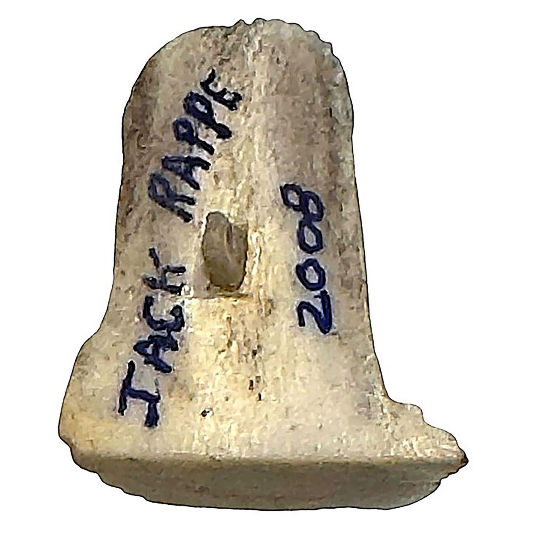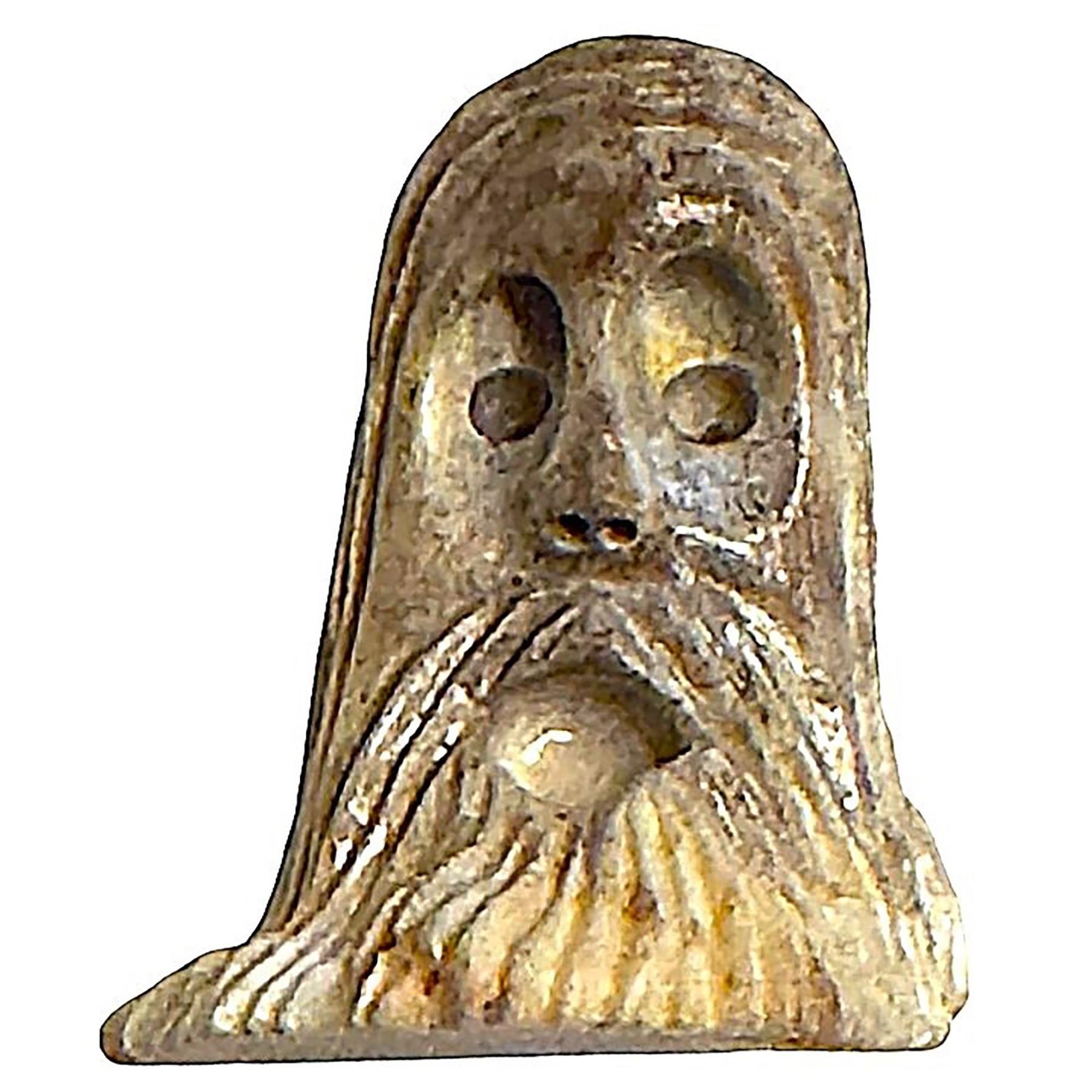 1 Large 21st century hand made Antler Bigfoot button. This carved Antler appears to be depicting either a man in the tree or a Bigfoot. It is signed and dated on the back. From the eclectic collection of Nikki Deal of Missouri.