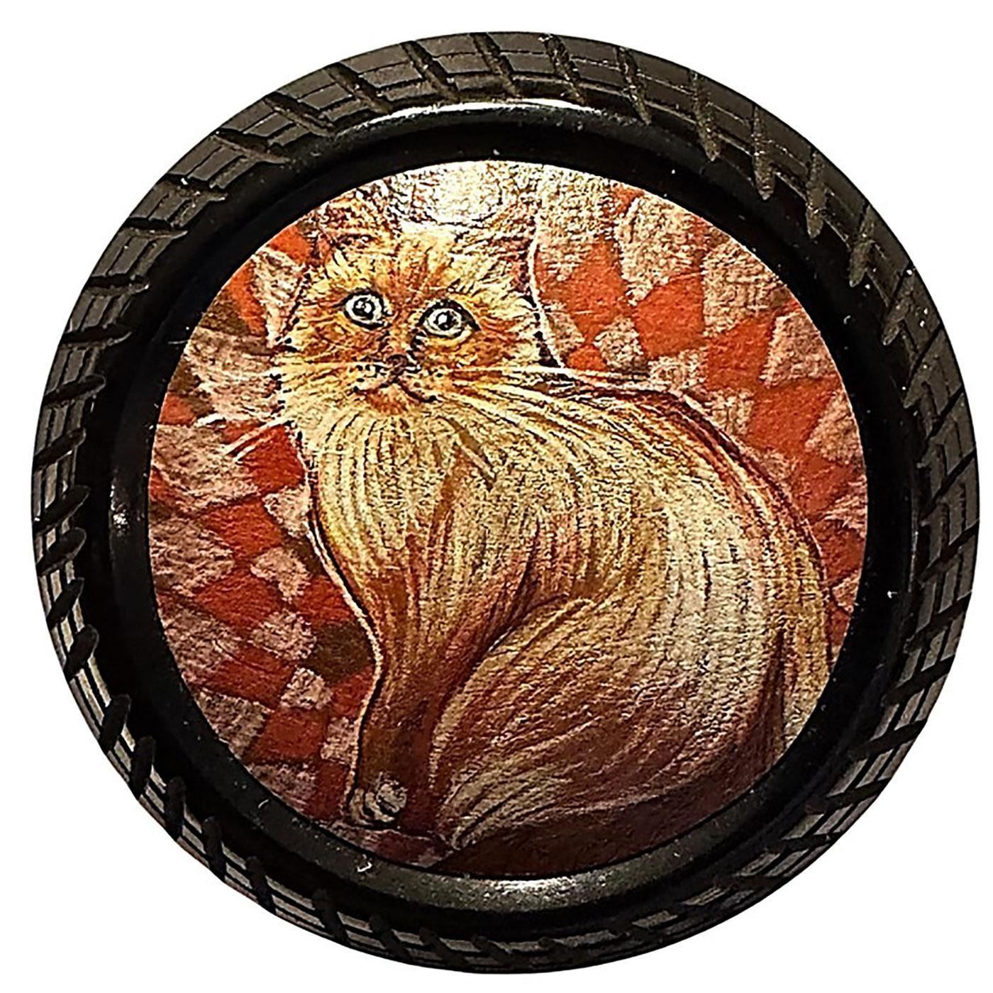 Sarah unfortunately no longer makes buttons as she is such a talented artist and we miss her magnificent and fine work. Her buttons are truly works of art and this colorful design of a full bodied cat certainly fits that description. Signed and dated on the back.