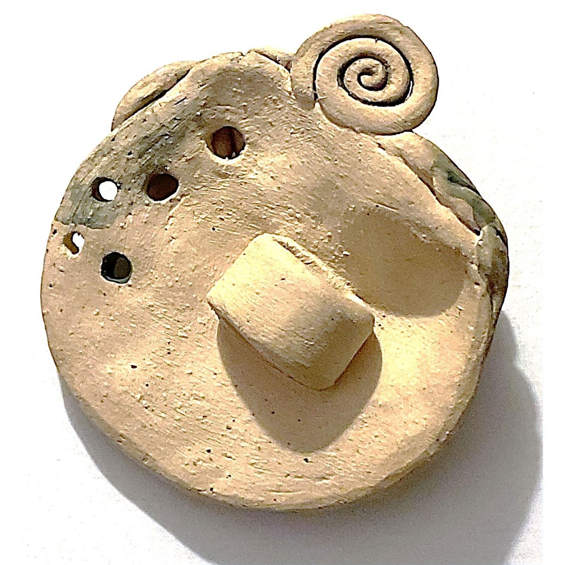 An extra large size 20th C. terra cotta ceramic pictorial button.
