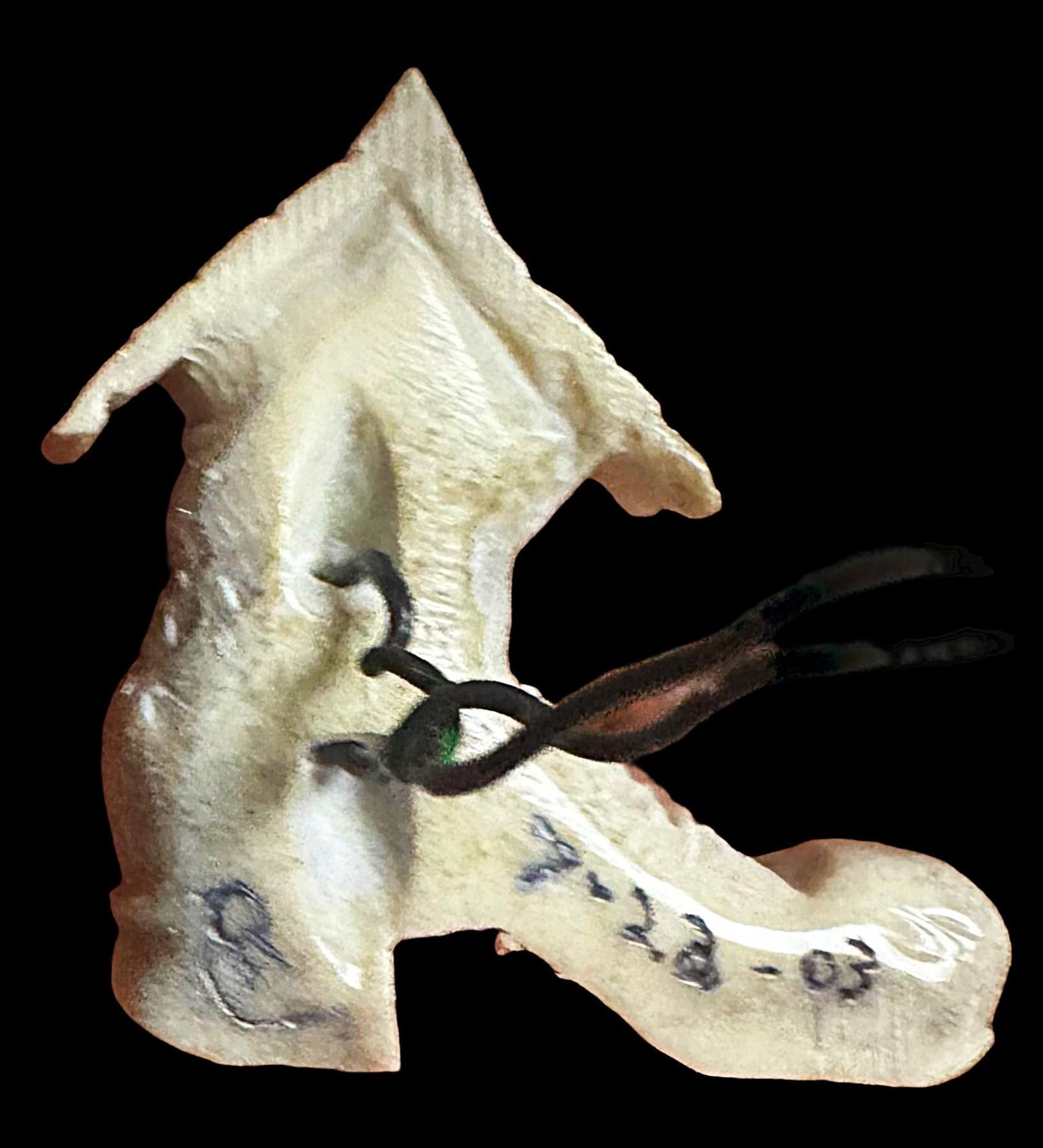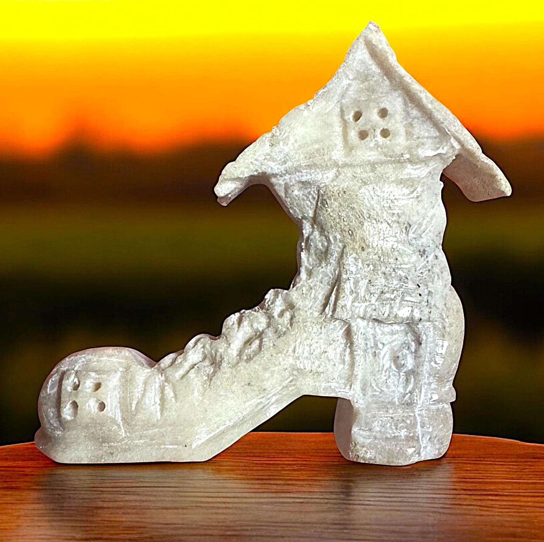 1 Large 21st C. hand carved realistic shape house in boot shape. The card this button was on says it was hand crafted in 2003 by the artist studio of Brad Elfrink. The piece is finely carved from natural material and very detailed.