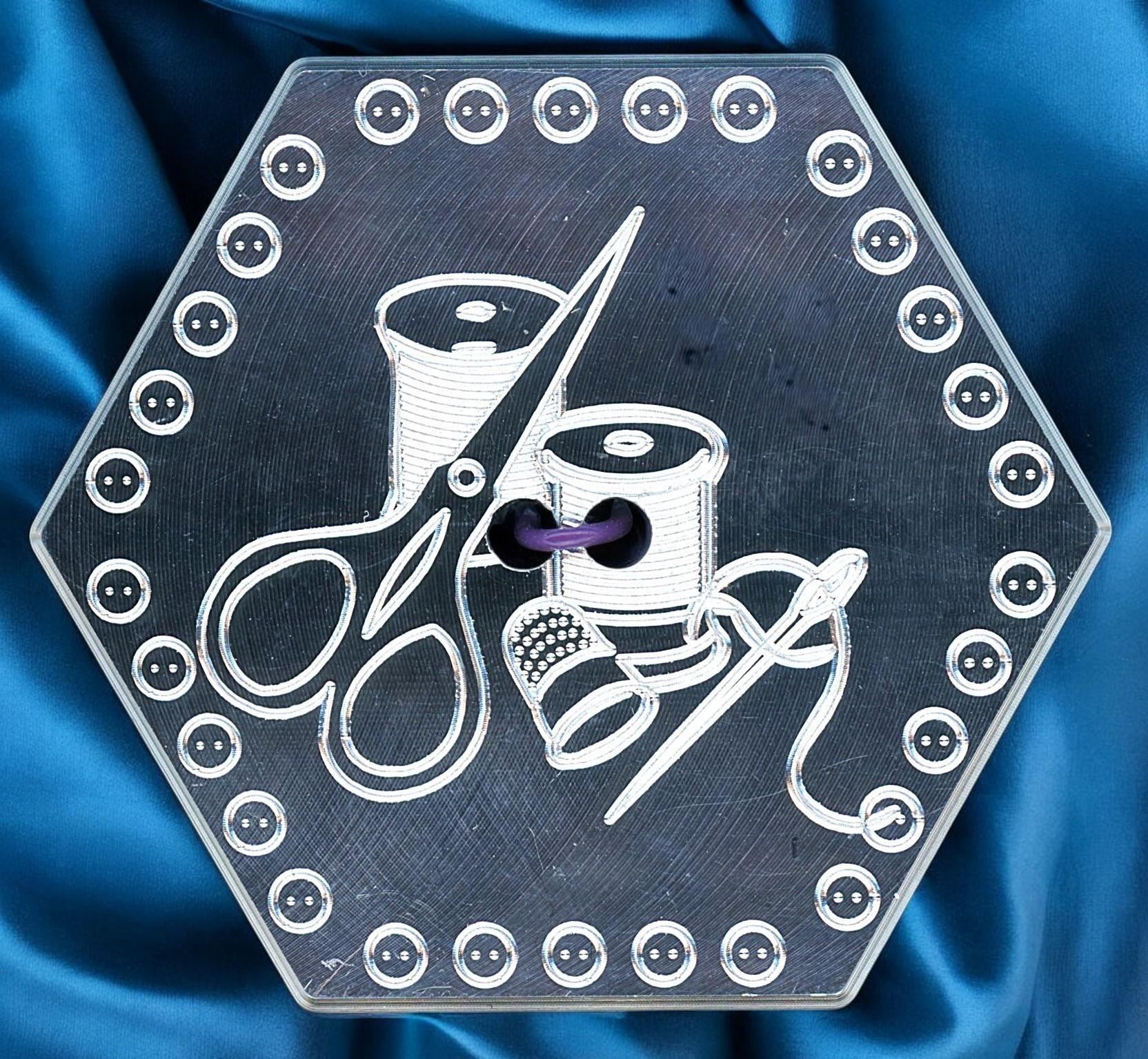 This very cool button was made for thee Florida State Button Society annual convention (favor Button) and is engraved thick brushed aluminum. These were made in a limited edition and this example is on its original card from the show.