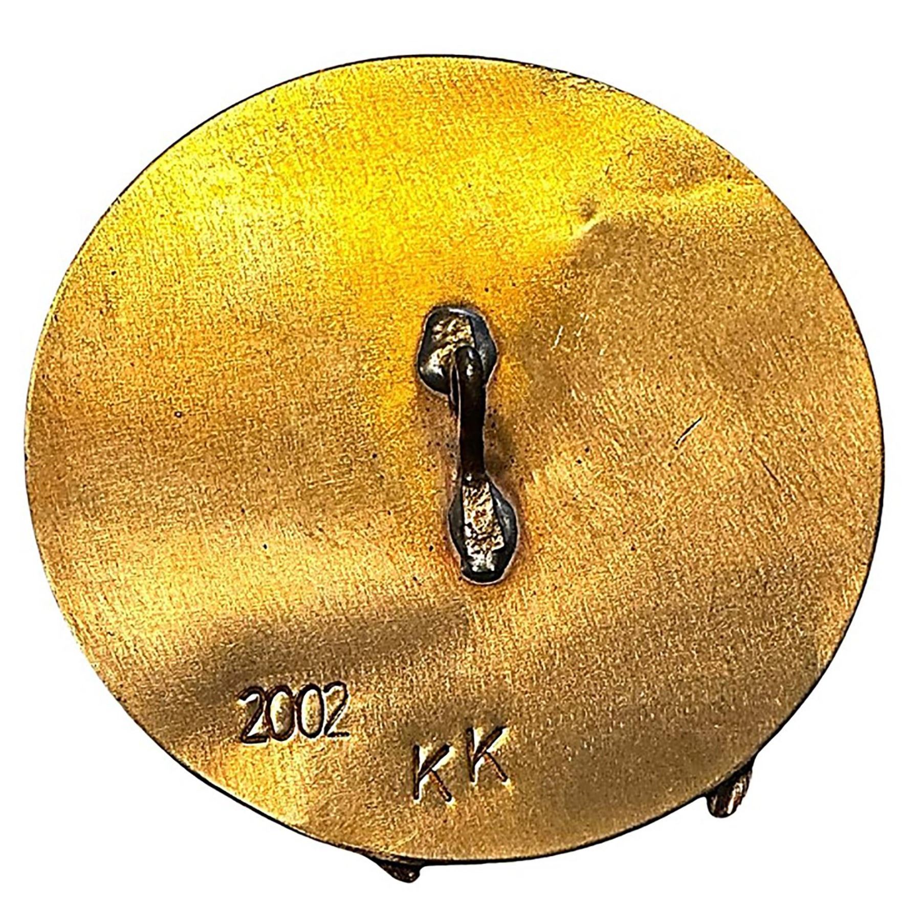 1 Large 21st century button by the late Kevin Kinne. Kevin was a talented artist but a revered dealer in the button world and is sorely missed. His buttons have become increasingly desirable including this very nice high relief Beetle button. Signed and dated on the back.